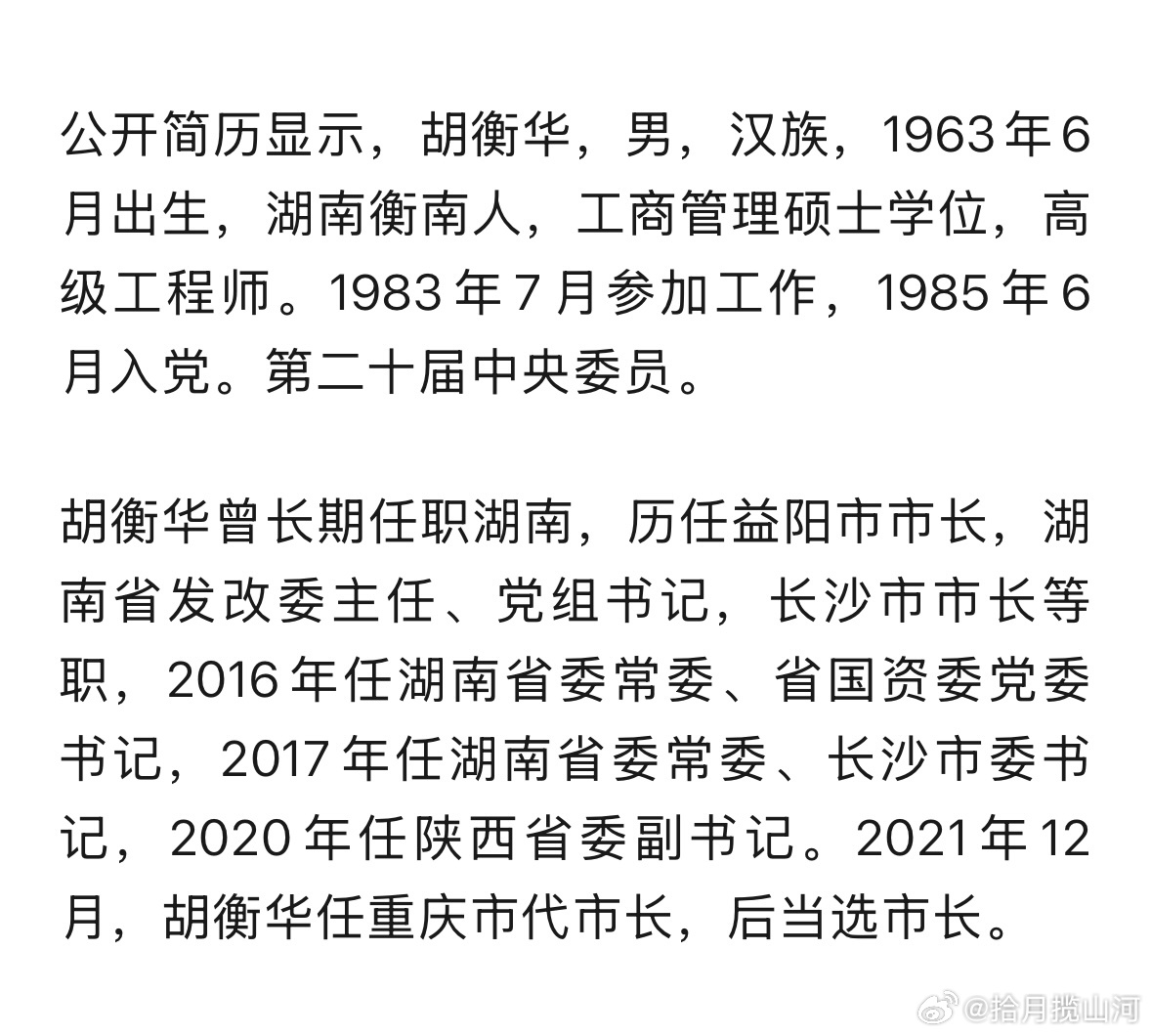 官宣:重庆市长胡衡华被查 曾长期在湖南任职,最后一次参加公开活动是在3月16日下午。