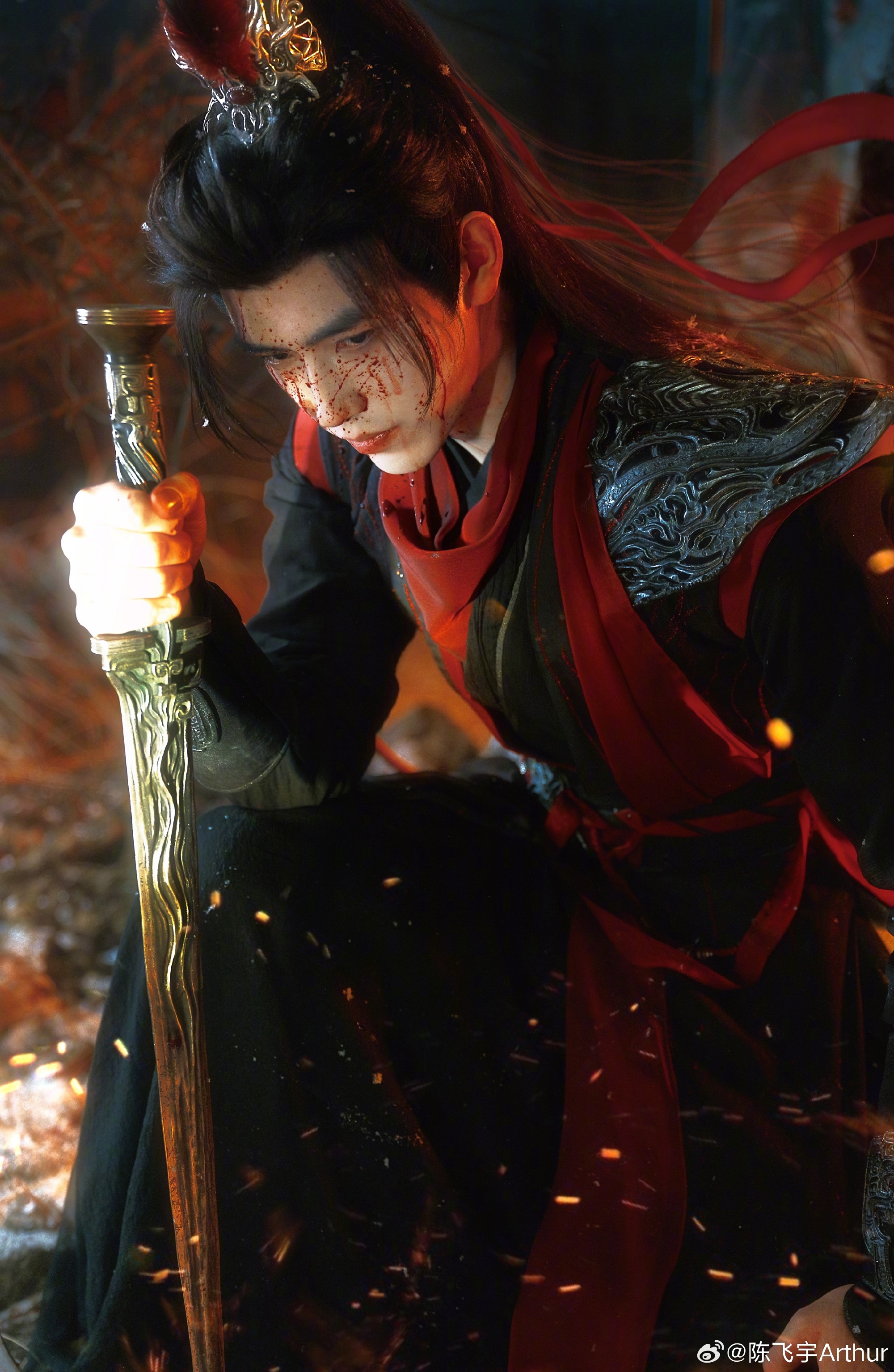 陈飞宇战损将军大片 黑红甲衣束身,陈飞宇这组段胥写真把少年将军的凛冽与英气焊在了