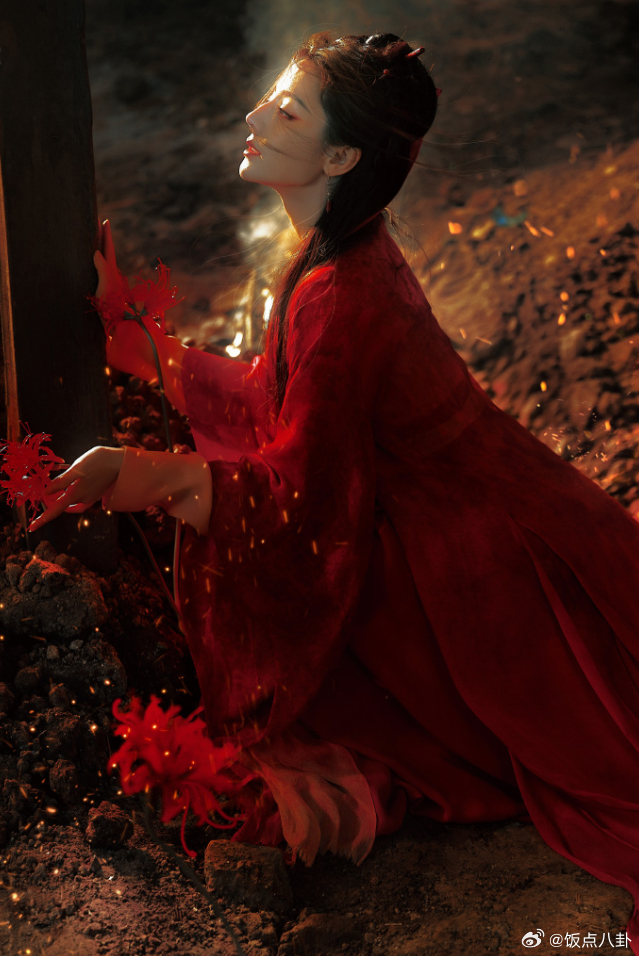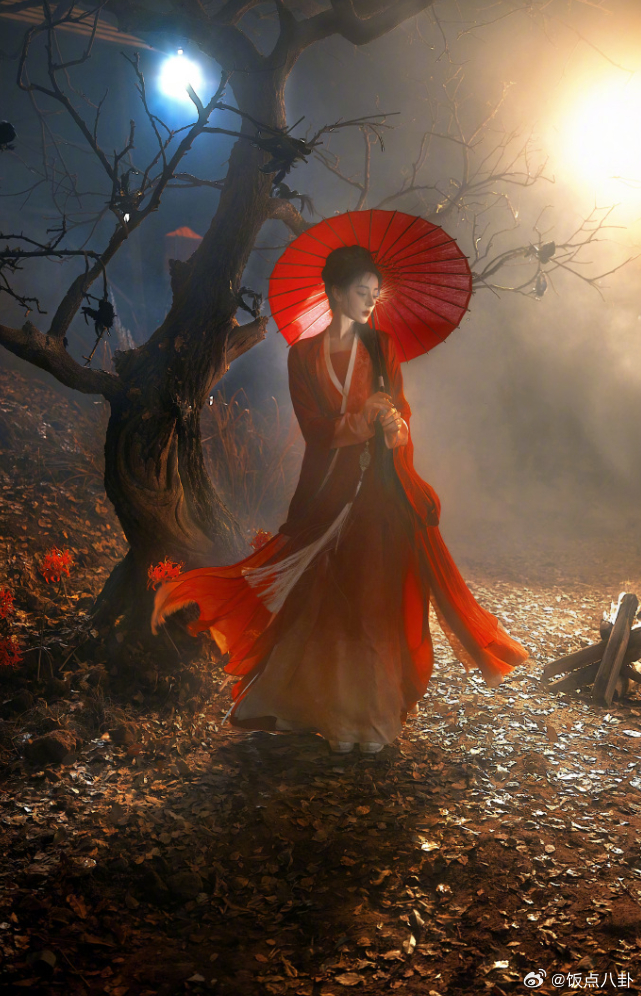 迪丽热巴红衣女鬼塑 这也太带感了!💘 红衣白发、深夜提灯,又美又飒的400岁鬼