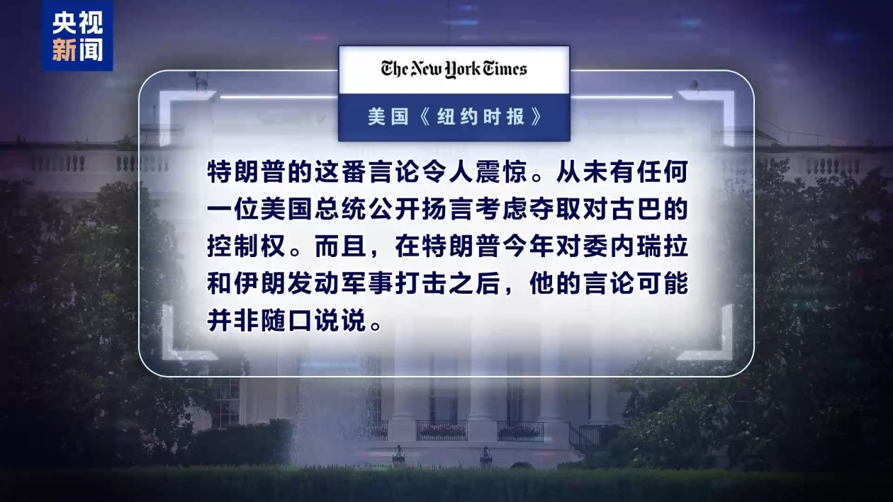 针对美国总统特朗普近日声称,将“以某种形式接管古巴”,美国方面17日有评论称,“特朗普的这番言论令人震惊。从未有任何一位美国总统公开扬言考虑夺取对古巴的控制权。而且,在特朗普今年对委内瑞拉和伊朗发动军事打击之后,他的言论可能并非随口说说。”评论称:“美国正在以经济和能源封锁制造人道主义危机,再以解除危机为筹码,逼迫古巴在政治上屈服。这不是外交,而是强权胁迫。”#4亿桶石油储备开始入市#