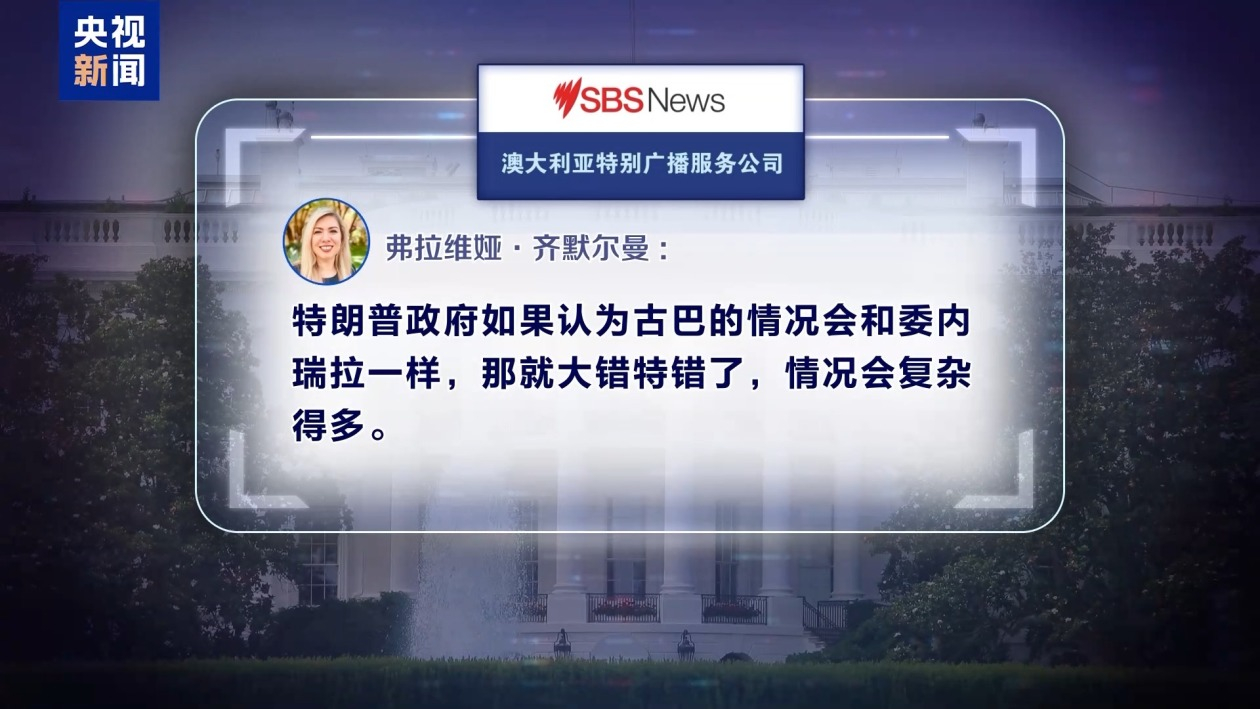西澳大利亚大学国际关系学者弗拉维娅·齐默尔曼称,“特朗普政府如果认为古巴的情况会和委内瑞拉一样,那就大错特错了,情况会复杂得多。”她批评美国:“并未真正考量介入古巴的后果、古巴社会的复杂性,以及古巴民众强烈的反美情绪”。(央视新闻)