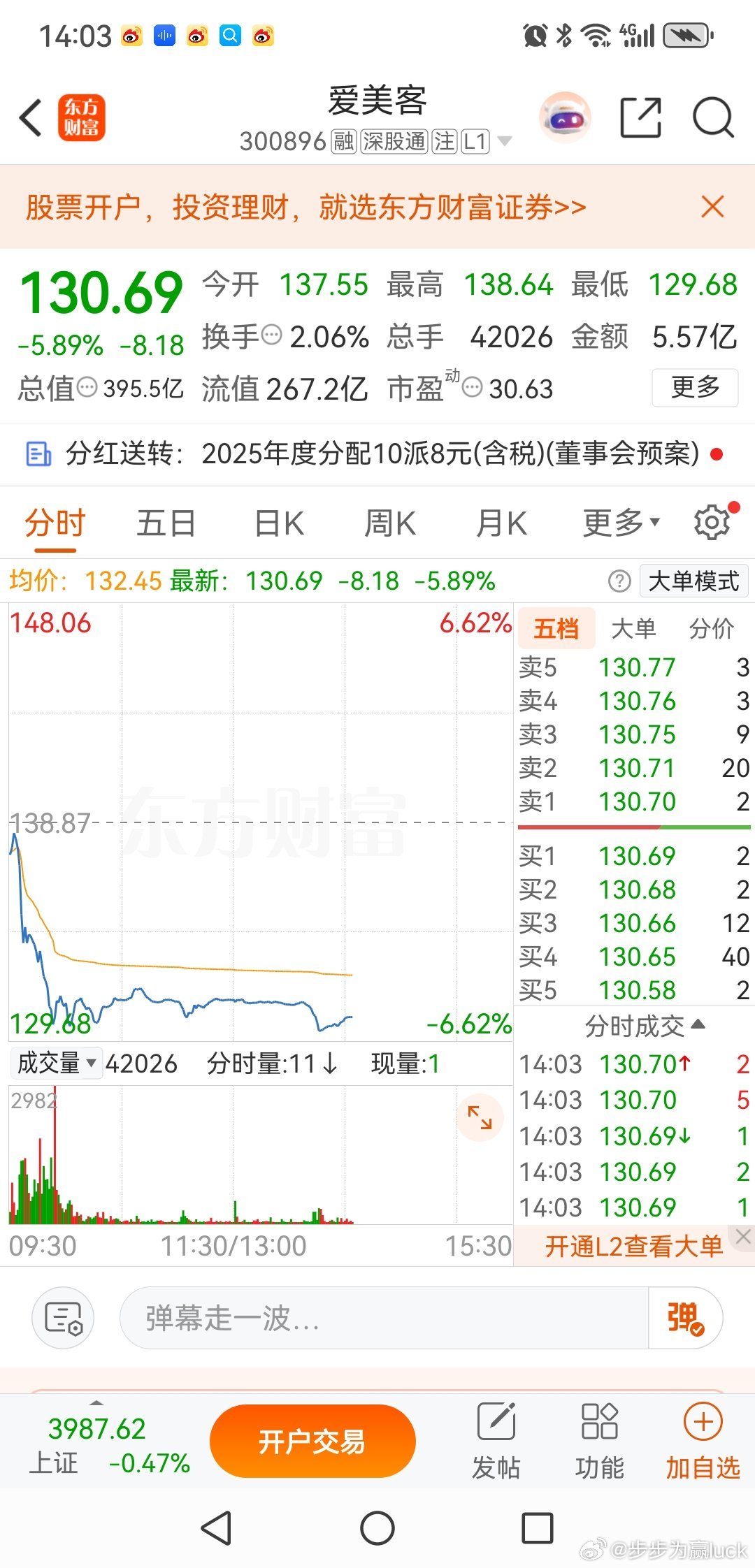爱美客,这个破位不是诱空爱美客,在低位横盘了三个月后,今天一根大阴线再度选择向下,价格离24年9月的历史最低点127.83元,也仅仅是一步之遥了。回望591元的高点,那已经是五年前的事情,回头要看那历史的巅峰,所有对抗趋势的人都已经被消灭在历史的尘埃里了。很多人只会通过现在的价格和过去的价格的比较,去判断高于低,其实很多股票过度下跌,往往都是基本面发生了重大变化,其往往是越跌估值越高。中国的消费问题,绝对不是有钱不敢花,而是负债太多、收入下降压制了消费,负债只能通过时间慢慢降低,这个时间长达一代人,绝不是3-5年的事情。不要因为他跌了80%就认为他不会再跌,拉长时间看,这里还是高位,因为企业的经营环境已经发生了本质的变化。抓住任何一次反弹机会减仓,他会和白酒一样,面临长期的衰退,20年的时间周期,谁也无法对抗。欢迎加入我们的免费交流群财经股票
