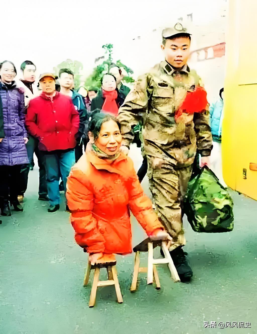没有双腿的妈妈送儿当兵,这一幕感动了所有的人。 一位失去双腿的母亲,即便行走极度不便,也执意要用自己的方式,送儿子踏上保家卫国的征程。 她没有健全的下肢支撑行走,便找来两个坚实的木小板凳,以凳代腿,交替着支撑身体艰难挪动。 粗糙的手掌死死扣住板凳边沿,掌心被磨出红痕,每一次挪动都要拼尽全力,却始终不肯停下送别的脚步。 那眼神里裹着撕心裂肺的不舍,是骨肉分离前,母亲对孩儿最本能的牵挂与心疼; 更藏着炽热滚烫的希望,是盼儿子上阵杀敌、驱逐日寇,护家国安宁的赤诚心愿。 在民族危亡的关键时刻,这位平凡的母亲没有选择将儿子藏在身边、独守小家安稳, 而是忍着别离的剧痛,送他扛起钢枪,加入抗日的洪流,用血肉之躯守护万里河山。 她虽身躯残缺,无法奔赴前线冲锋陷阵,却以最坚韧的姿态,站在了爱国的最前沿。 两个小小的木凳,承载的不仅是一位母亲的步履,更是千万中国百姓同仇敌忾的家国担当。 抗日民族统一战线的坚固根基,从来都离不开后方百姓的无私奉献, 无数像她一样的父母,割舍骨肉亲情,送儿送女参军报国,这才撑起了抗战胜利的希望。 她没有惊天动地的壮举,却以最朴素的母爱与家国大义,成为了时代里最温暖的光。 这位以凳为腿送儿当兵的母亲,用最平凡的举动,书写了最伟大的情怀,当之无愧是世界上最可爱的人。 她的身影,定格在抗战的历史长河中,也永远镌刻在每一个中国人的记忆里。 各位读者你们怎么看?欢迎在评论区讨论。