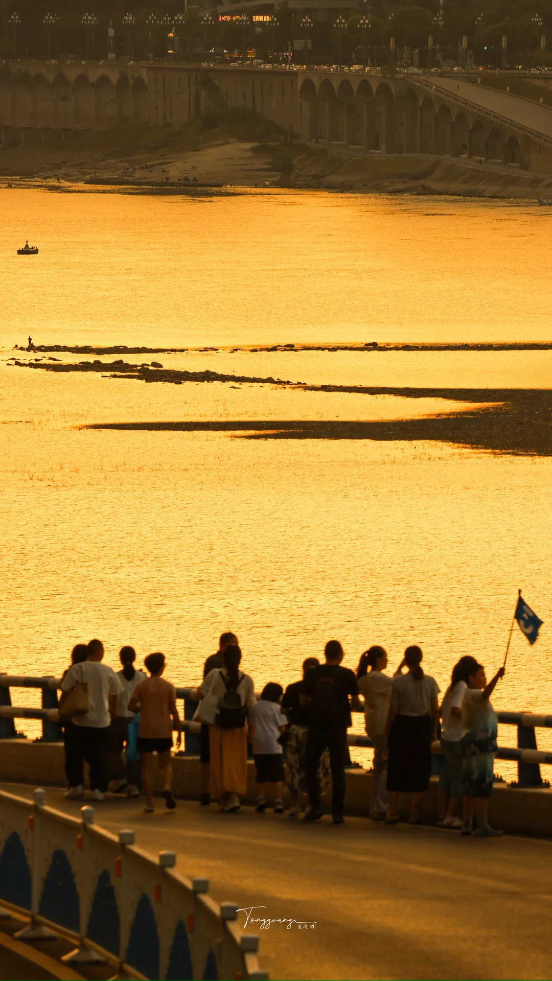 2️⃣ 日落黄昏,江水成了天空的梳妆镜