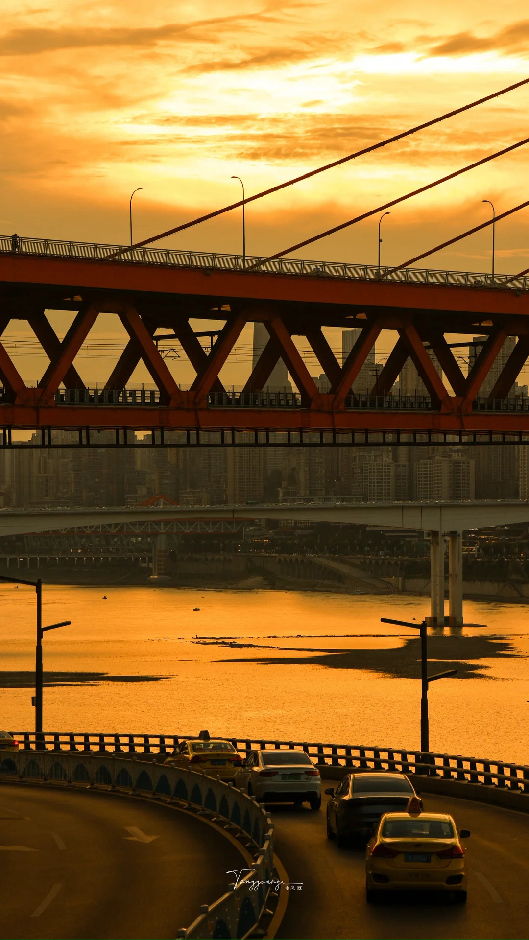 它将钢铁桥墩与落日熔铸成鎏金的印章