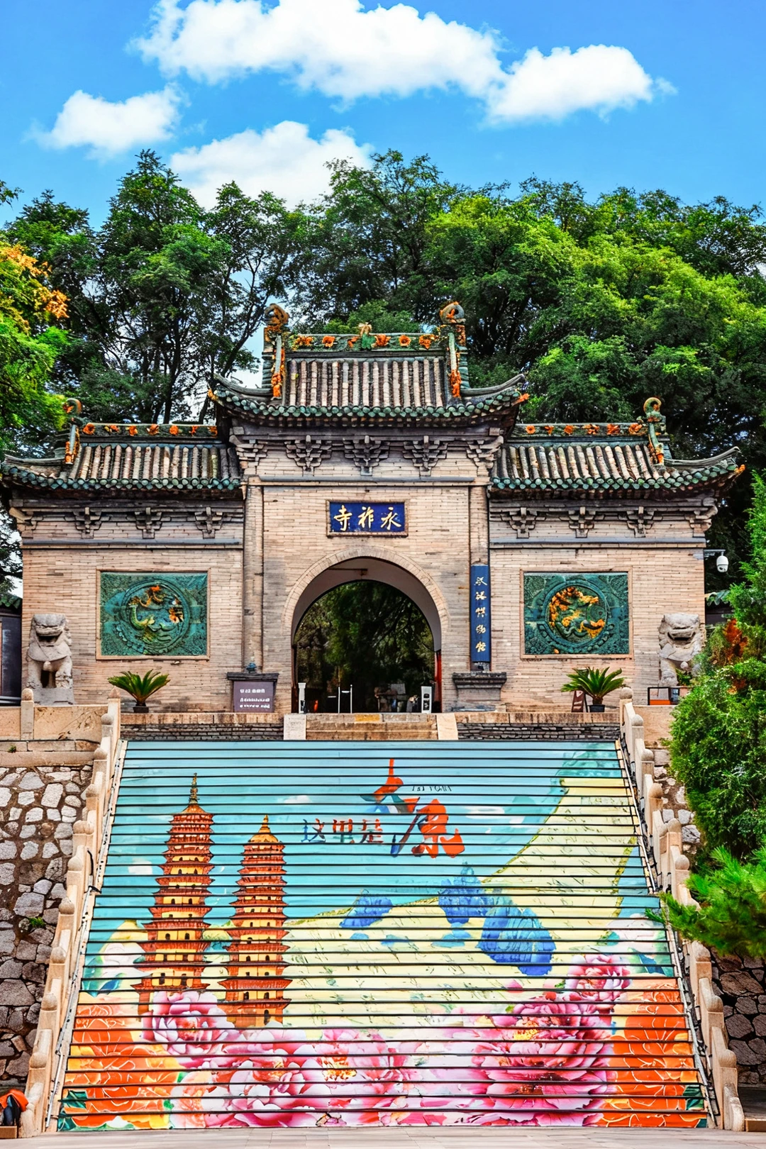 公园内的标志性建筑永祚寺双塔