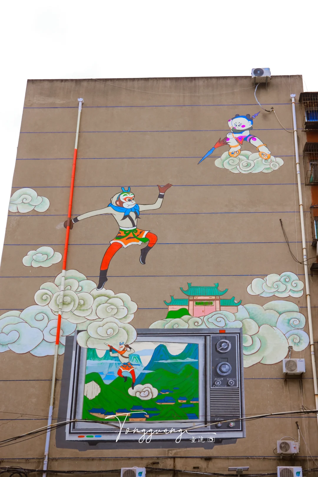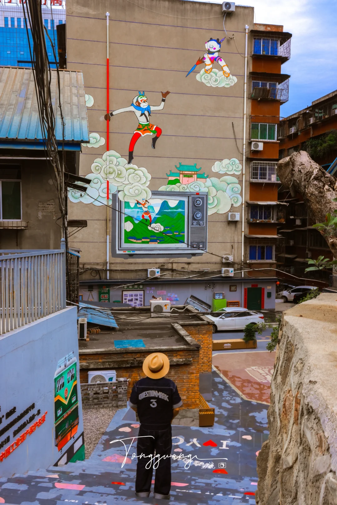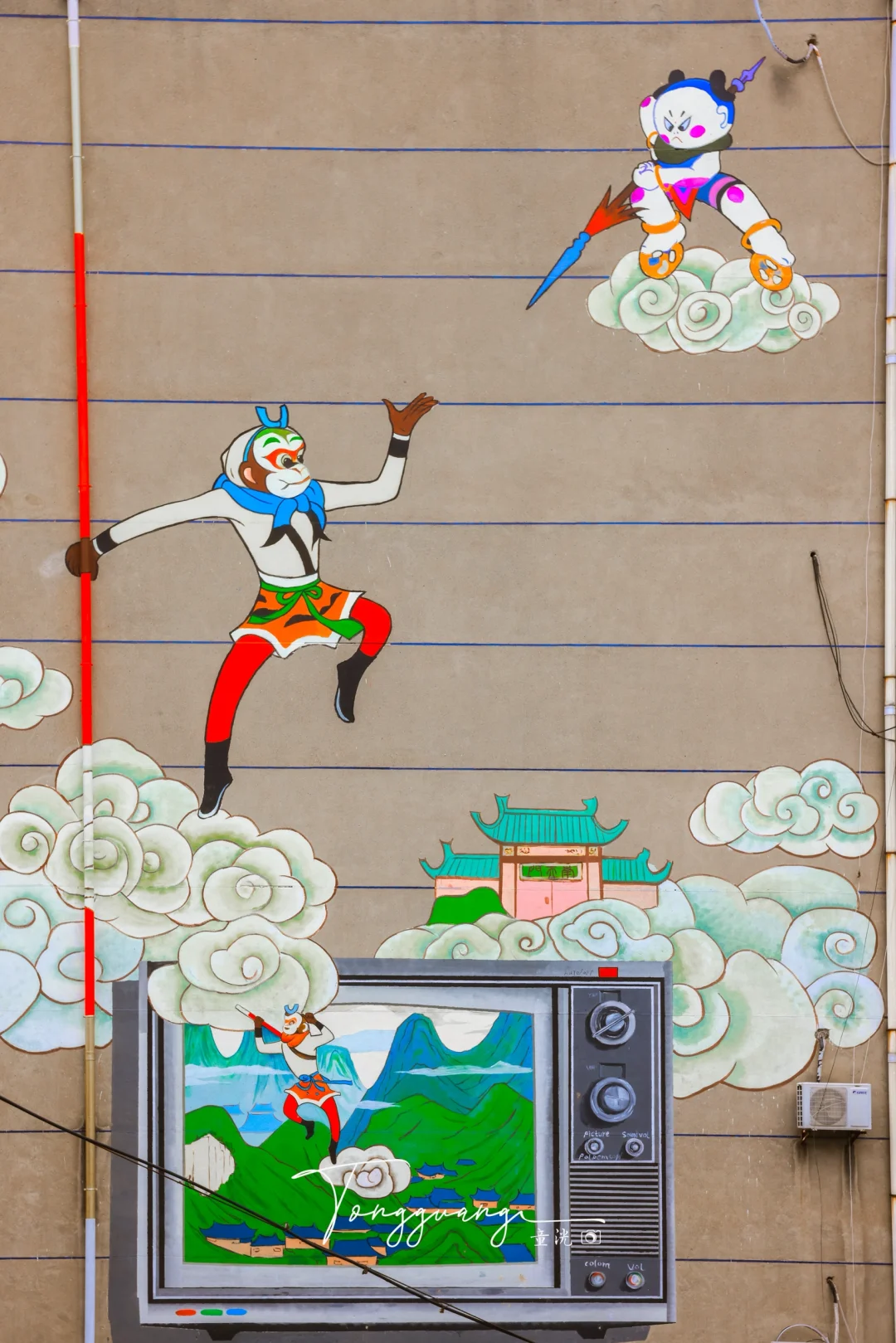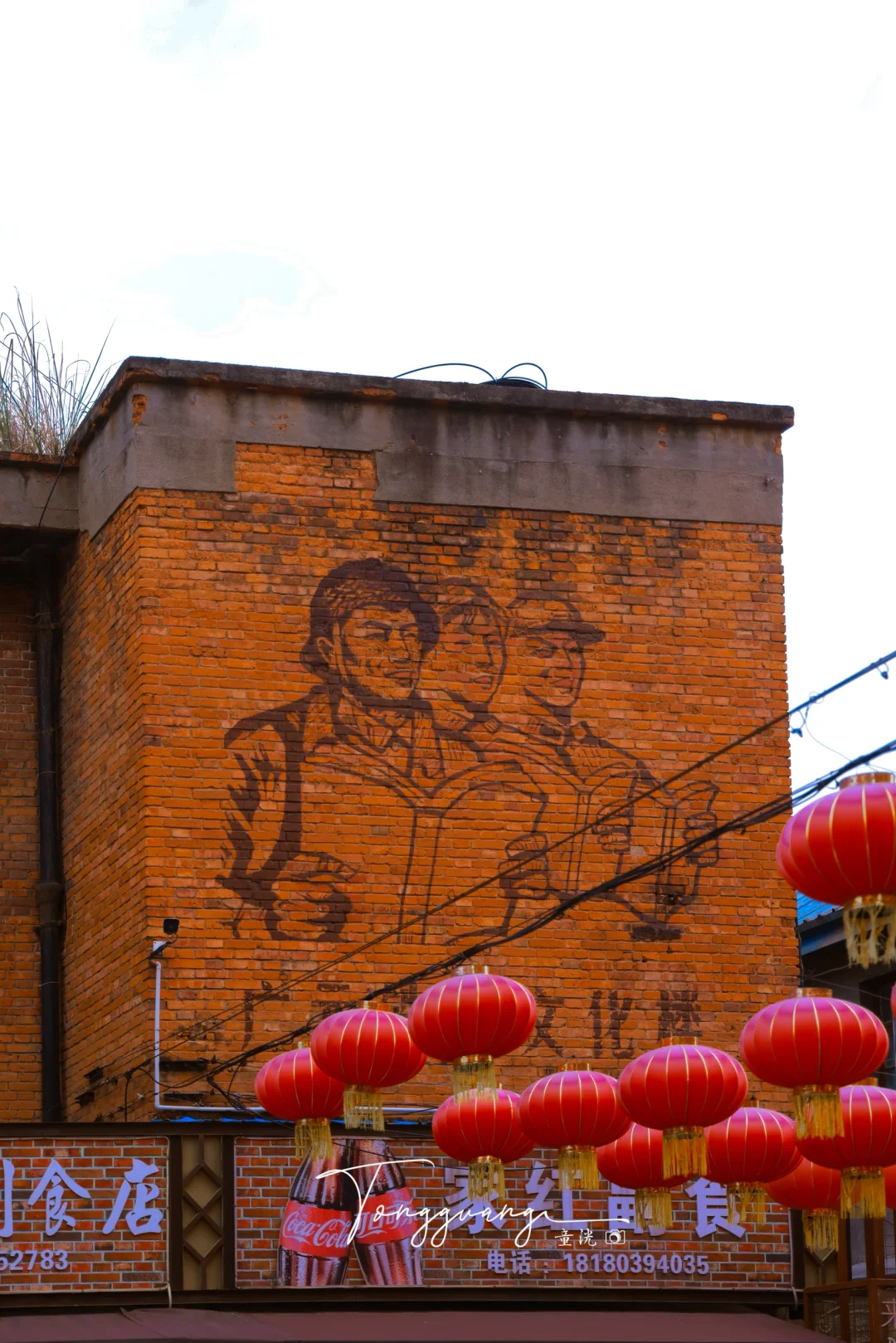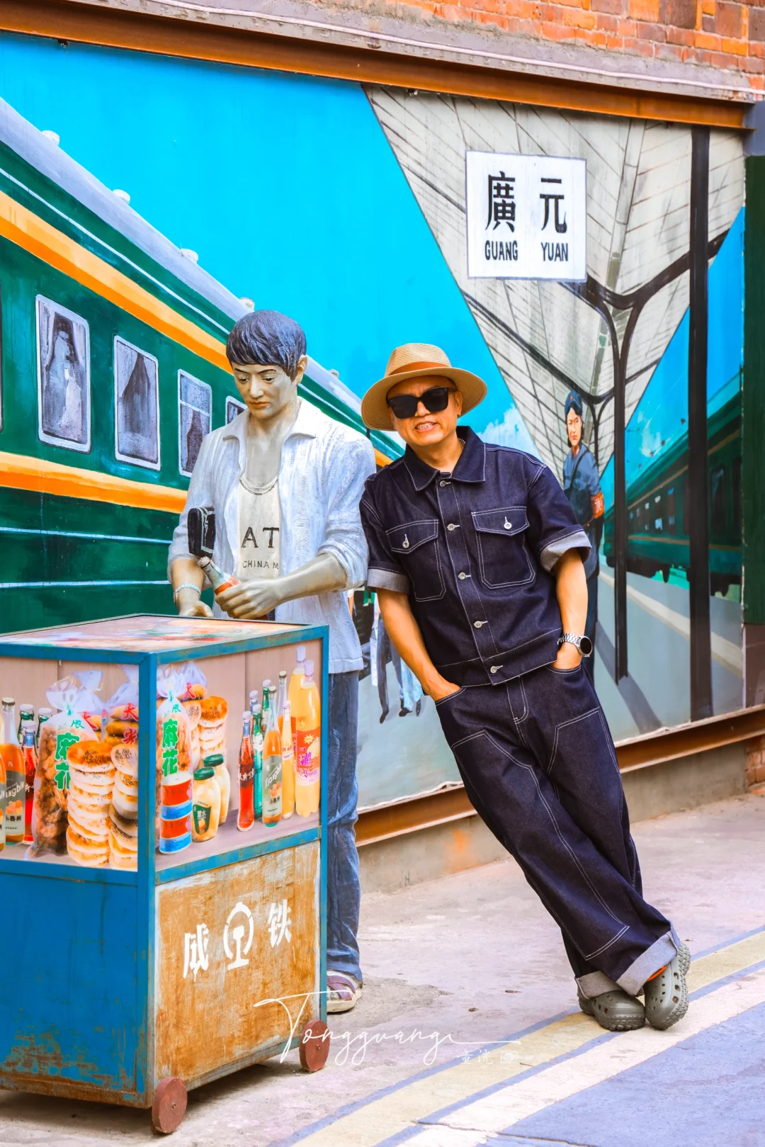 老式站牌、锈蚀铁轨、改造后的文化墙