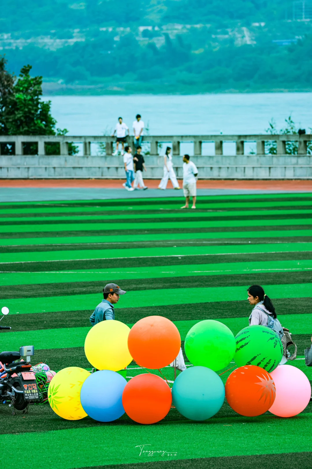 游客,江边学校操场的学生