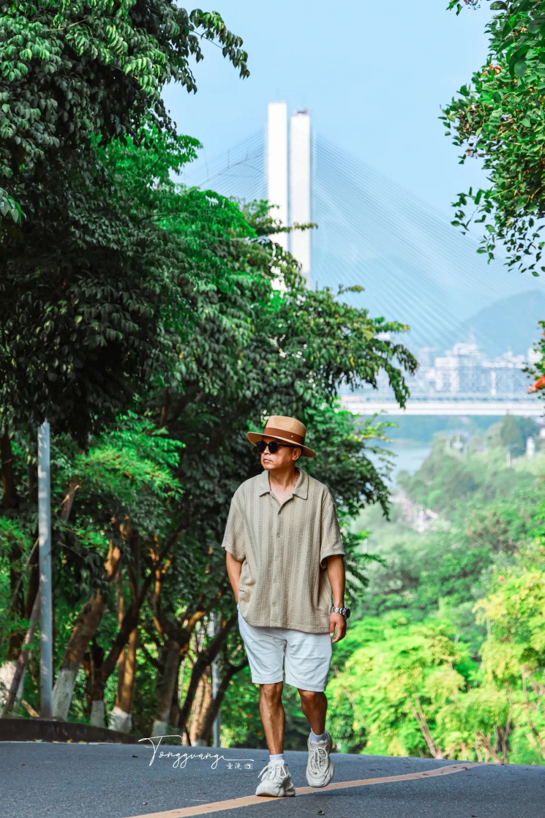 拍桥同框画面,也可去观灯塔吹江风