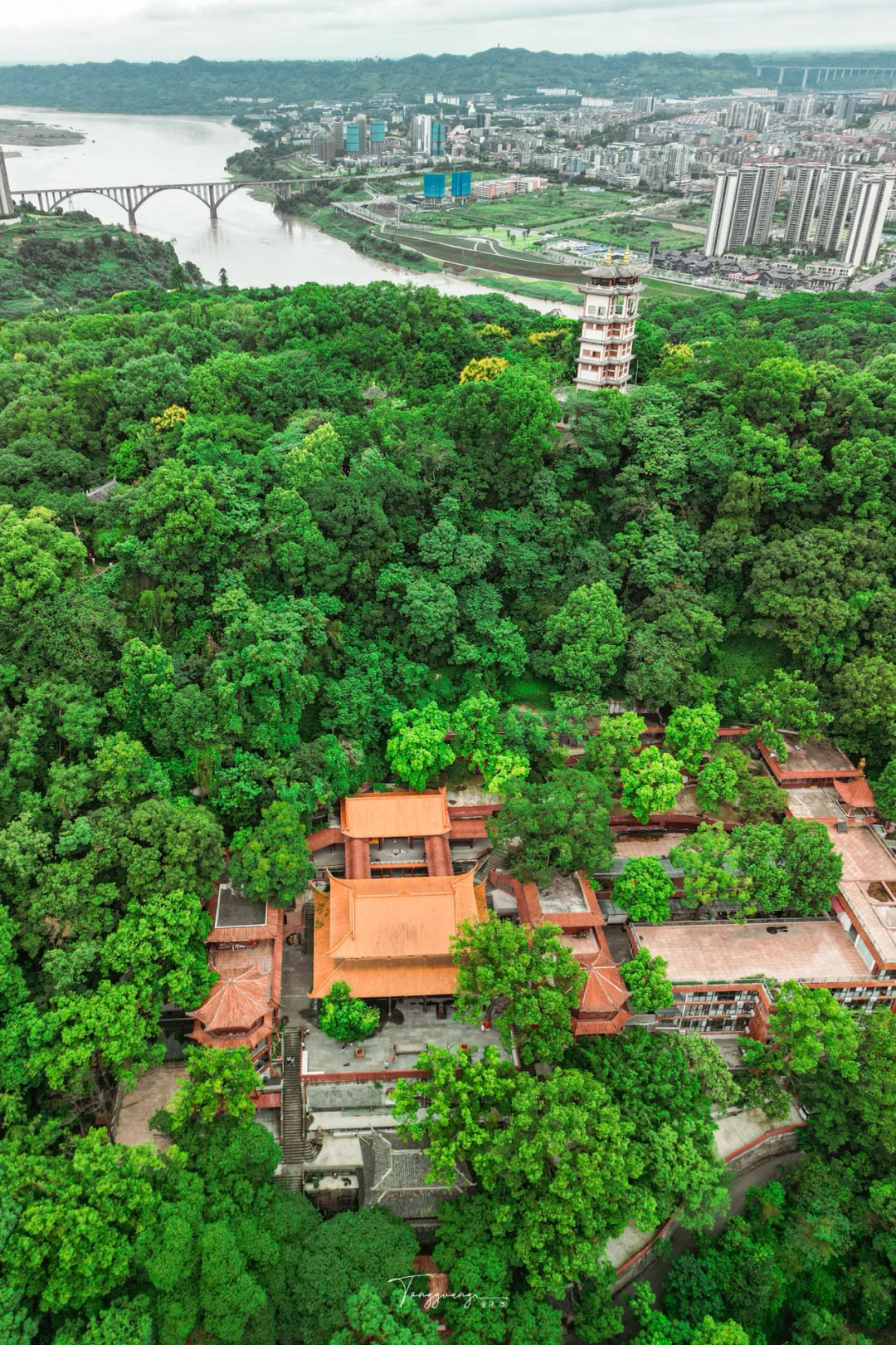 山顶俯瞰三江汇流+哪吒行宫→千佛崖