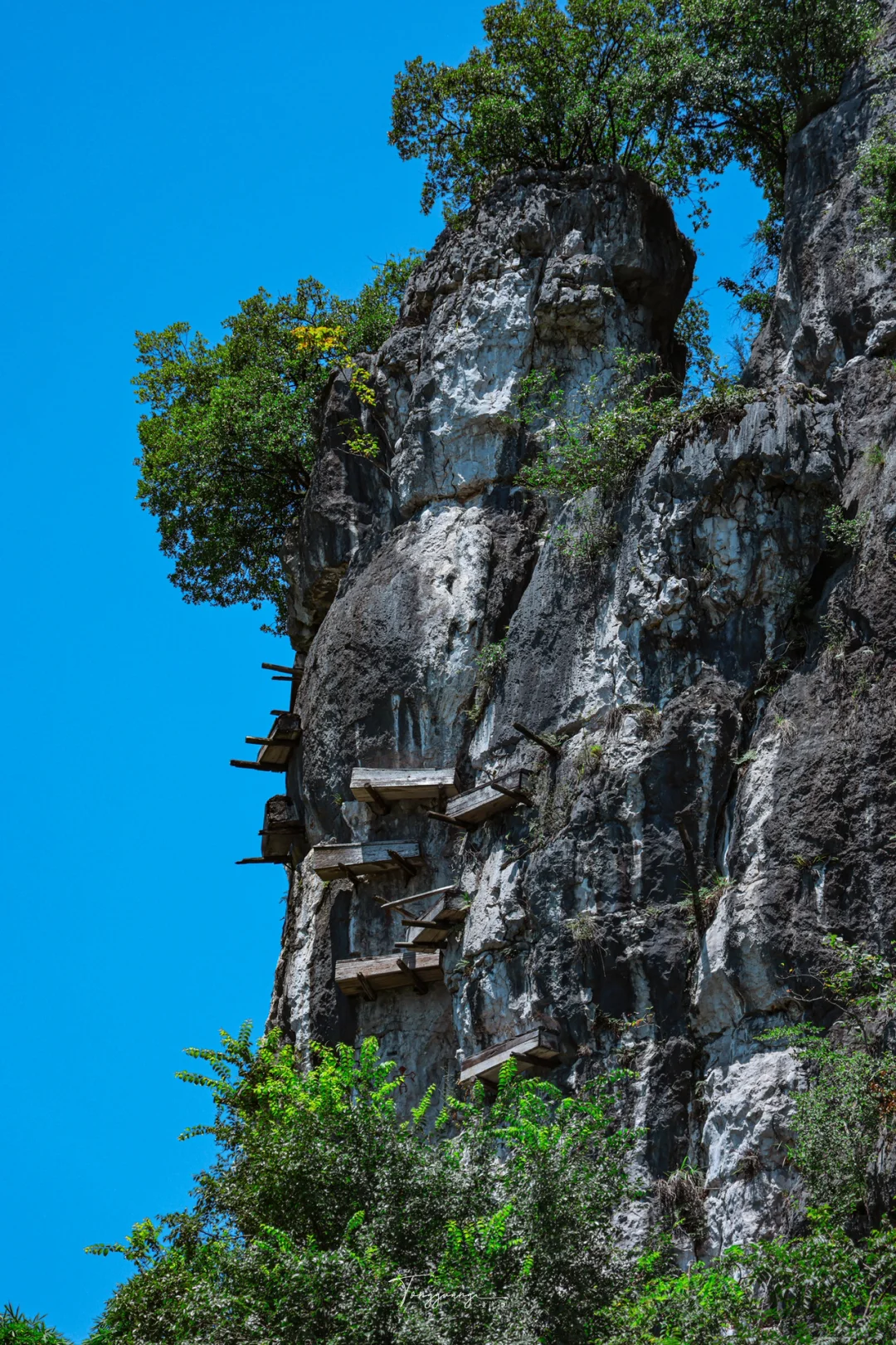 远观山崖上的僰人悬棺