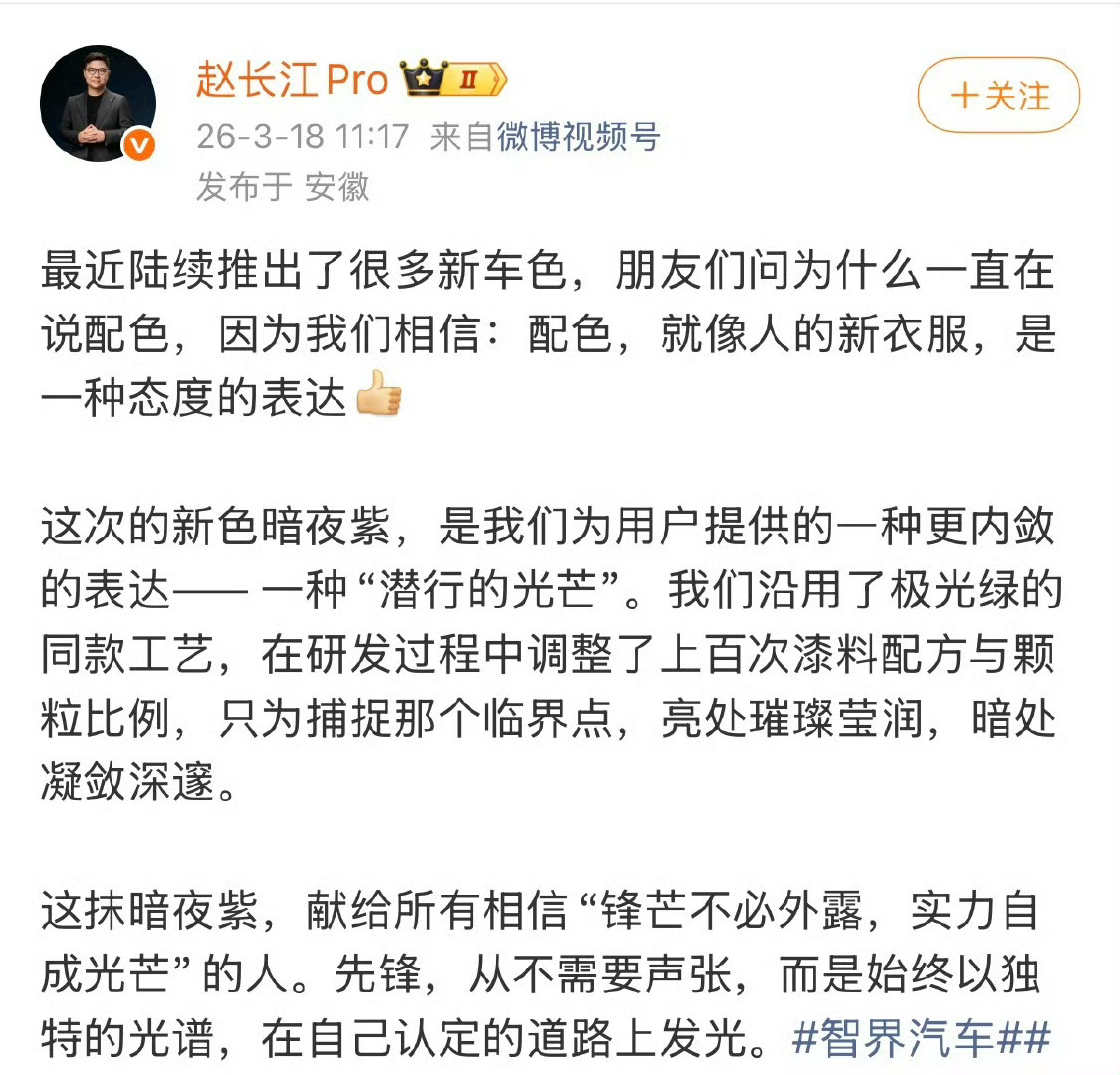 智界高管称新配色是态度的表达赵长江智界S7实力喊话全新配色不止是颜值上的焕新,更是自我风格的鲜明表态。被市场忽视的纯电轿跑,以顶尖技术实力扭转刻板印象,驾控、安全与智慧体验全面拉满。不盲从、不将就,以先锋格调与硬核底气重塑出行标准,呈现兼具格调与硬实力的出行优选。