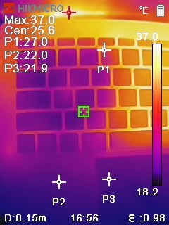 这次Xiaomi Book Pro 14用了双风扇+1万mm² VC均热板+三风道的散热系统。风通过机身底部和两侧的进气口进入到机身内部,通过风扇把VC均热板上的热量从出风口带走,非常高效。实测FPU单烤半小时,50瓦下CPU封装温度为87℃,掌托处最高22℃,键盘处最高27℃,温控表现优秀。 小米笔记本Pro14首发评测