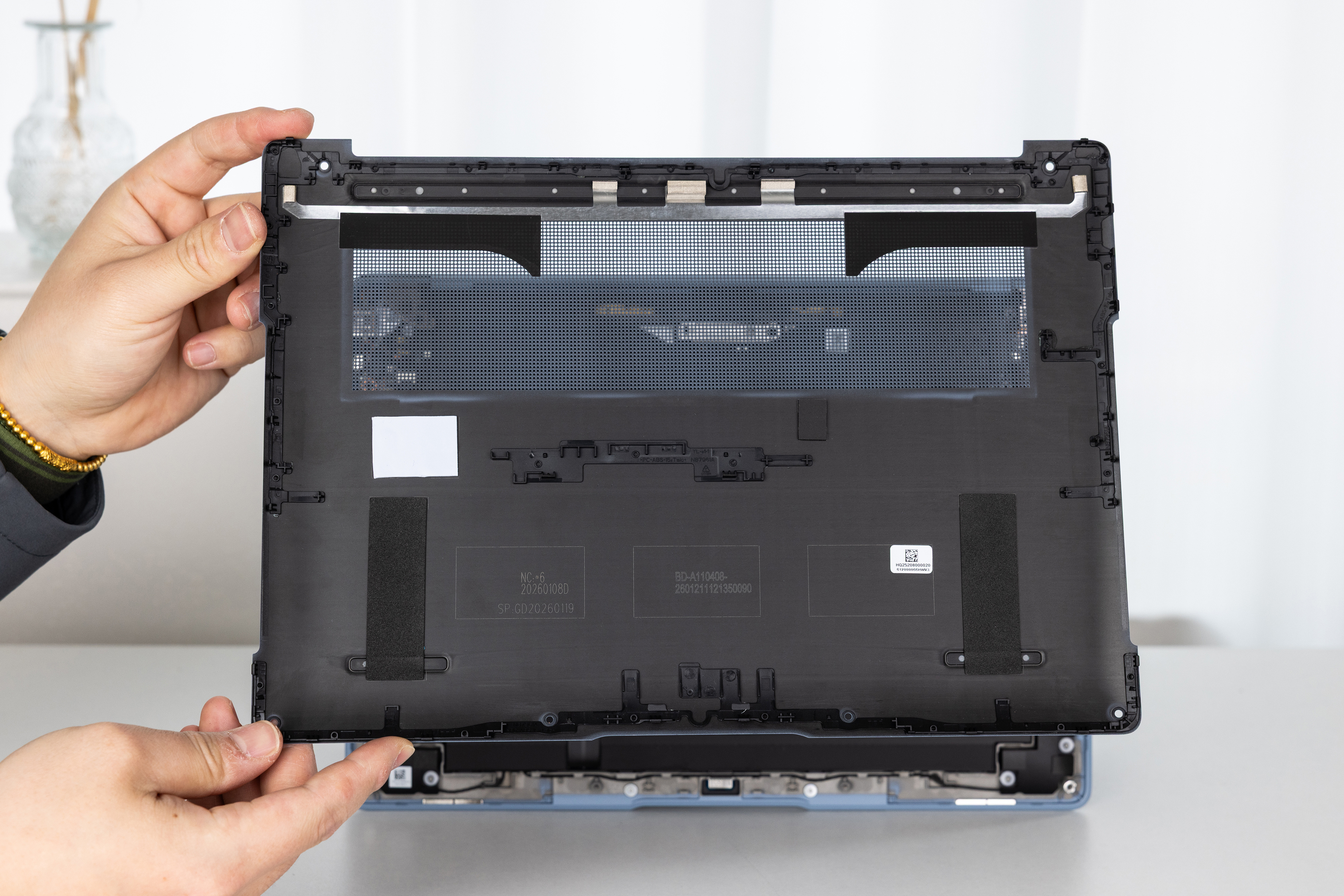 这次出厂自带2242mm的1TB短盘,你可以自行添加2280mm长盘,非常的方便。并且今年的底盖为碳纤维材质,又轻、又薄,质感还很好~