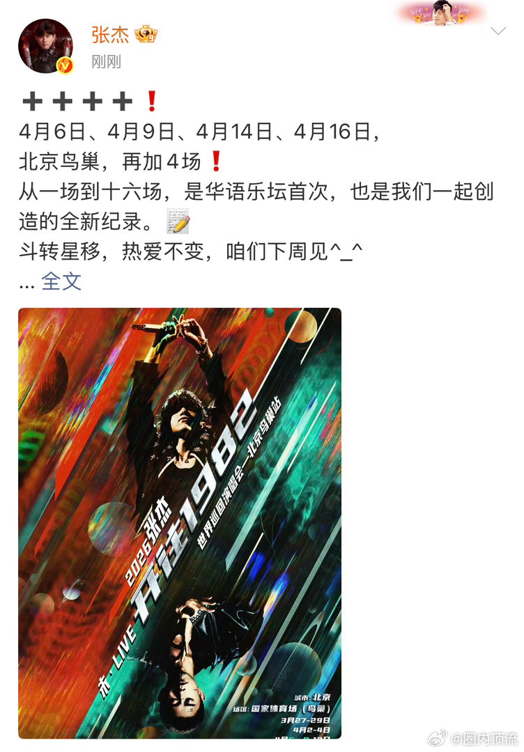 欧买噶!!张杰北京鸟巢再加4场,一共十六场张杰北京鸟巢从一场到十六场张杰北京鸟巢再加4场