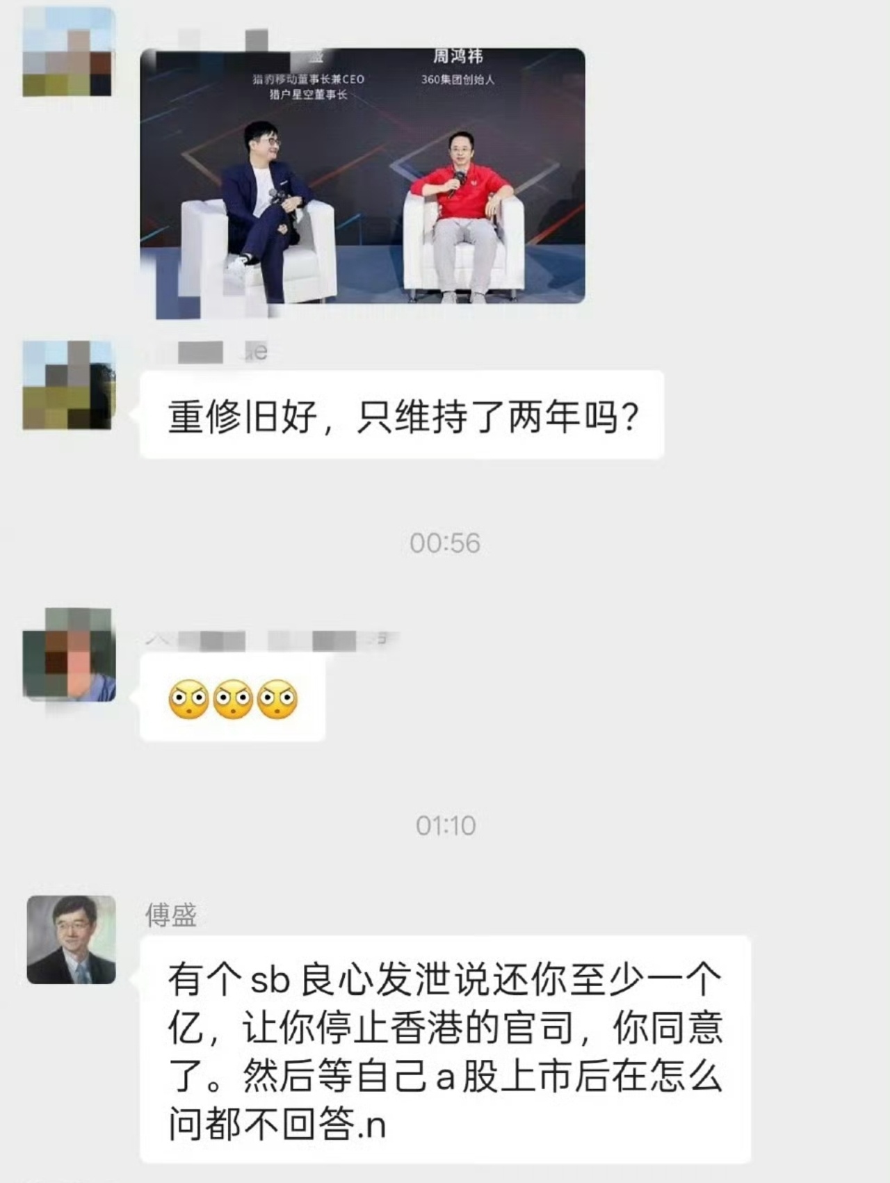 再度破裂(2026年3月):近期傅盛在微信群公开指责周鸿祎“欠钱不还、拉黑好友”,涉及上亿元旧账,双方关系再度紧张。