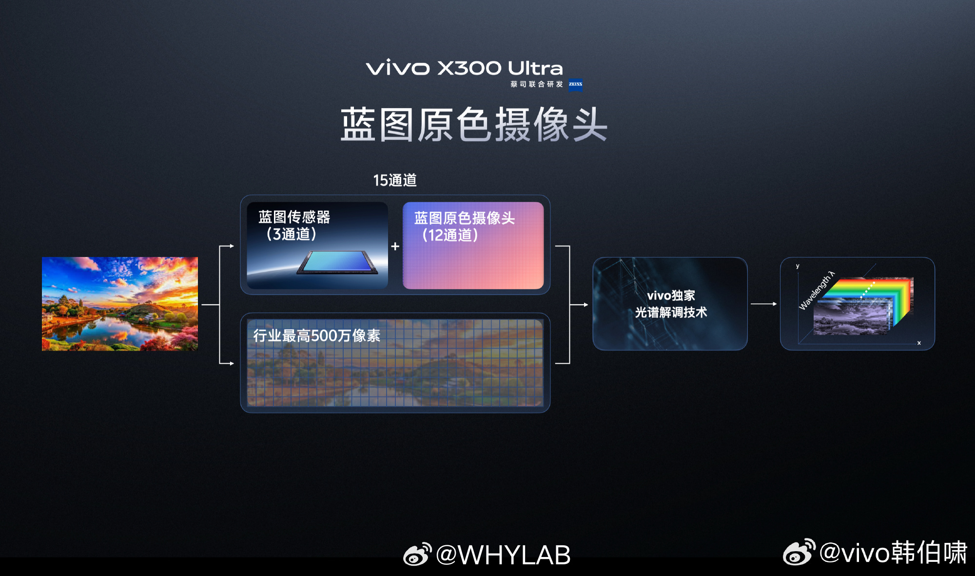 好家伙,vivo X300 Ultra 搭载蓝图原色摄像头,拥有行业最多的 12 光谱通道,行业最高 500 万像素,可能是目前最强大的光谱采集类摄像头硬件。