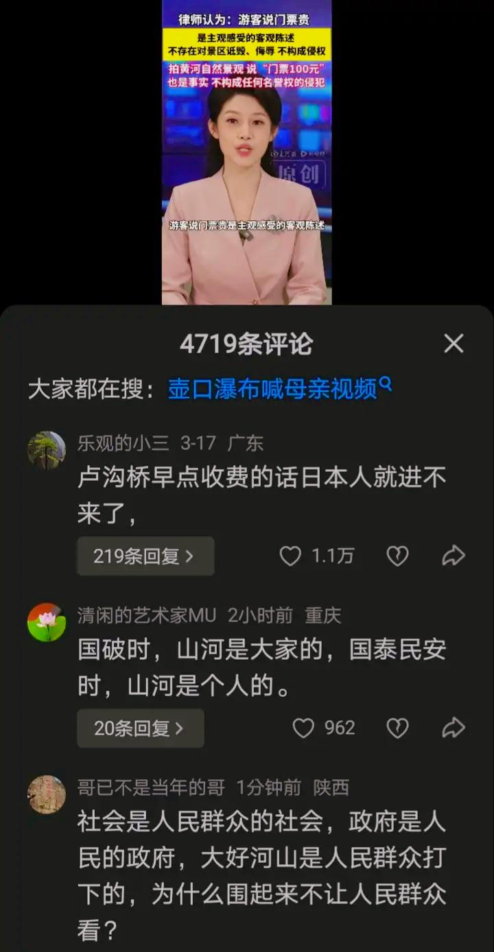 我去!黄河壶口瀑布这波操作,真是把圈地收钱的吃相暴露得淋漓尽致! 游客实话实说吐槽门票贵,转头就被景区投诉侵权,更离谱的是还敢宣称壶口瀑布是他们开发的私产,这波操作直接戳中了所有人的痛点! 本就是大自然的馈赠、全民共有的公共景观,所谓的开发不过是修了点步道围栏,凭啥就成了敛财工具? 大家反感的从来不是合理的管理费,而是把公共资源私有化,还容不得半点实话的傲慢!景区的核心该是服务不是圈钱,凭本事做好体验让游客心甘情愿买单,远比捂嘴打压吐槽、强占资源收费强百倍。 你觉得自然景区该如何平衡运营和公共属性?评论区聊聊你的看法~ 旅游 景区