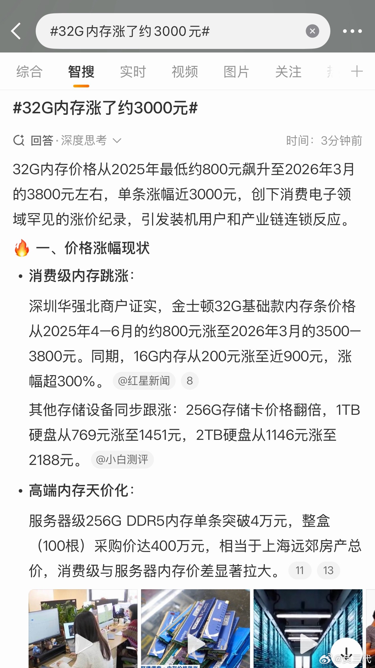 32G内存涨了约3000元我们手机端都开始涨价了,更不要说电脑端了。从去年双11开始计划换台电脑,越等越买不起