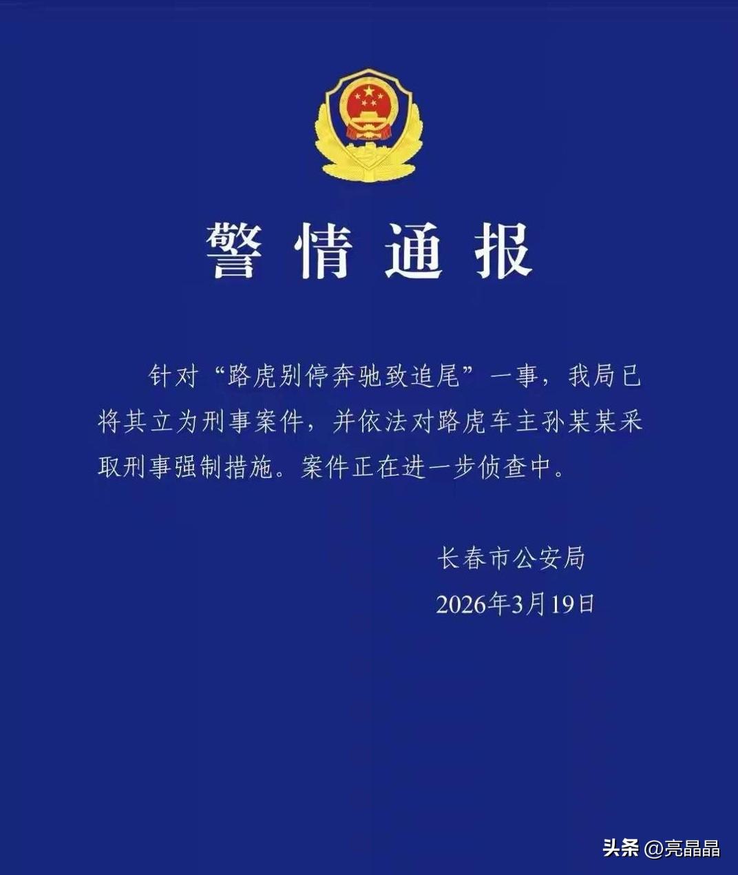 吉林长春吕先生遭路虎车8次别停,致追尾这事曝光,没想到反被自称路虎车主母亲的电话疯狂骚扰,还有自称民警上门敲门,吕先生拒绝后无奈用扫帚抵门,被守6小时后报警,直到彩织派出所劝离才离开。 3月19日最新消息报道,别车致追尾行为被立为刑事案件,路虎车主孙某某被采取刑事强制措施。 本就是赔钱可以解决的事情,现在被刑事拘留,不知道这路虎车主有没有后悔? 案件“三连跳”:从危险驾驶-寻衅滋事-无犯罪事实的反转,再到曝光后重新立案调查,不得不让人觉得路虎车主有后台,就连辅警都上门敲门6小时,受害人吕先生单位领导、岳父老领导都施压要求和解。 网友质疑究竟有多大的保护伞?一定要严查!给老百姓一个公道! 有行车记录仪完整录像都能这么处理,大家质疑的不只是责任划分,更是一个公道,如果让路虎车主这样的人横行霸道,没准下一个被别车,维权无门的会是我们。 执法认证反复,破坏法治公信!路怒症屡禁不止,就因为是违法成本低,定性疲软。 当恶意别车者有恃无恐,像吕先生这样的守法者索赔无门时,马路戾气只会越演愈烈。 行车记录仪还原真相,法律更应该挺起腰杆,还吕先生一个公道。 对此事你怎么看?欢迎评论区留言。