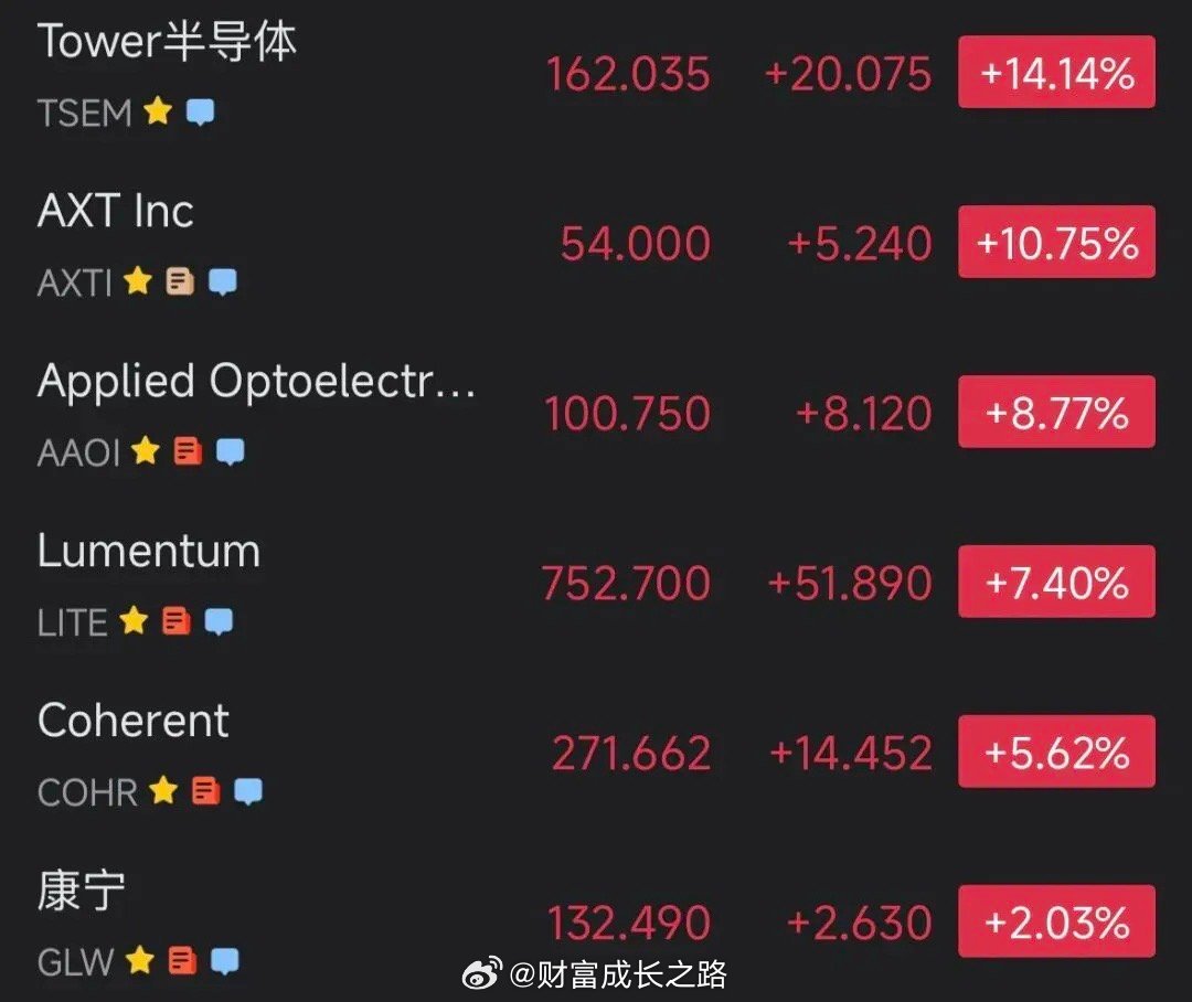 美股 Tower和AXT创下新高,老馒头和高意继续大幅反弹,美伊战会对短期走势造成扰动,但不会影响光互联产业长期趋势。