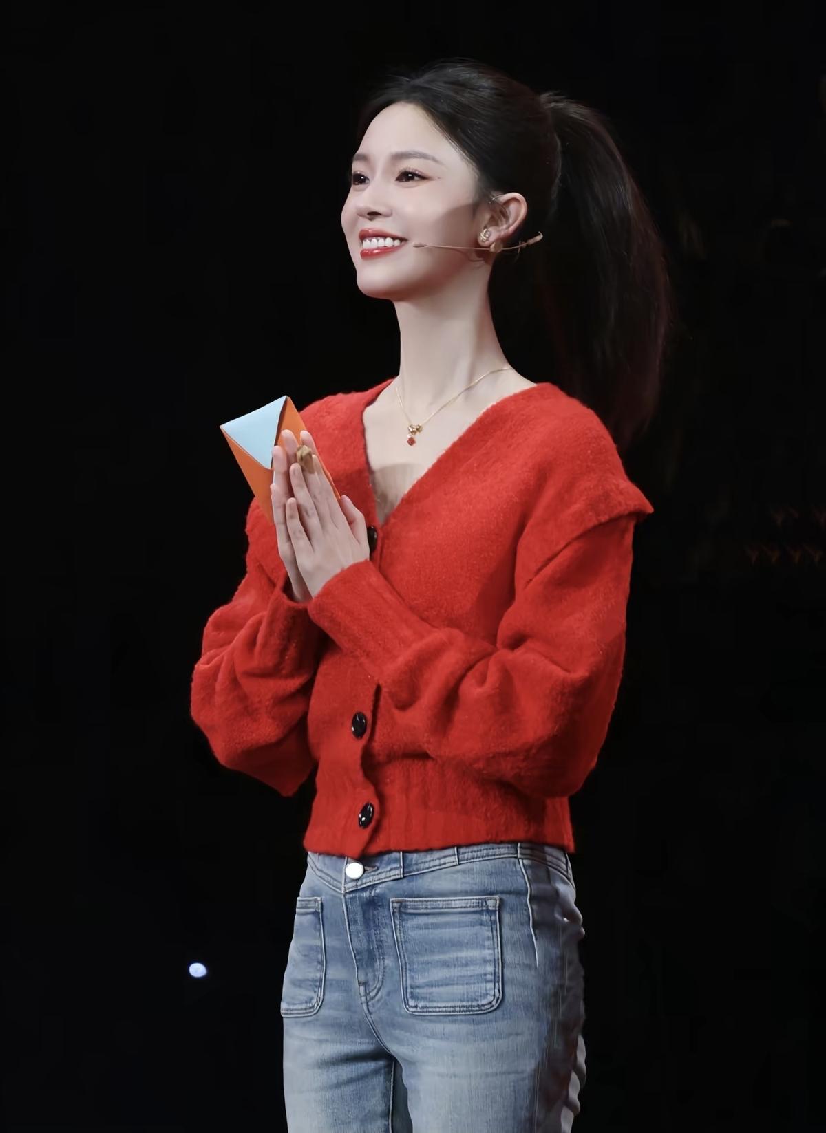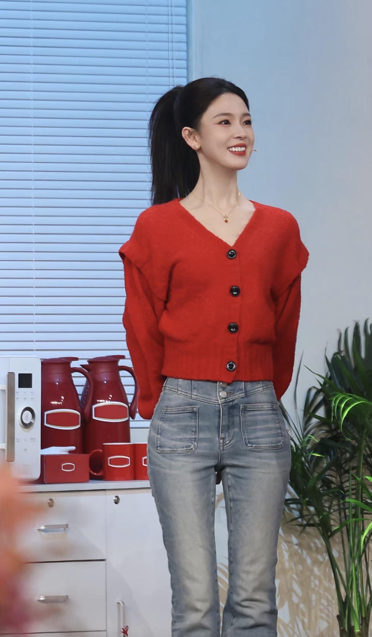 红毛衣+牛仔裤=元气满分💯陈瑶这一身也太显气色了吧[给力]娱乐明星