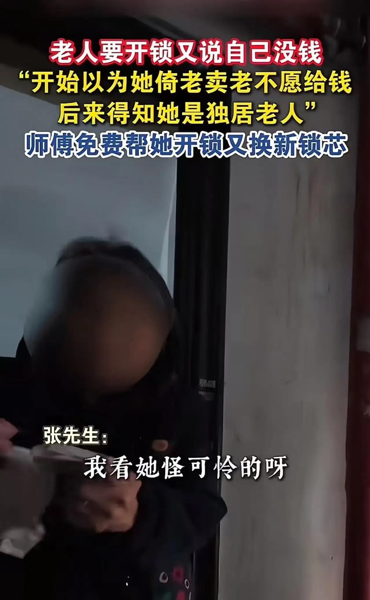 老人找开锁师傅开锁,却说自己没钱支付,这究竟是倚老卖老还是另有隐情?开锁师傅接下来的举动,却让人感动不已! 那天,一位老人焦急地找到开锁师傅,说自己家门锁坏了,需要帮忙打开。可当开锁师傅完成工作后,老人却面露难色,说自己没钱支付。开锁师傅一开始以为老人是倚老卖老,不愿给钱,心里有些不悦。但随后,在与老人的交谈中,他得知老人是一位独居老人,生活十分拮据,连基本的生活开销都成问题。了解到这一情况后,开锁师傅没有多说什么,默默地收拾好自己的工具,然后告诉老人,这次开锁不收钱。老人听到这话,瞬间泪目,紧紧握住开锁师傅的手,连声道谢。这一幕被路人拍下并上传到网络,迅速引发了网友们的热议。大家纷纷表示,这哪里是开锁人啊,你打开的不仅仅是门锁,更是善良的心和幸福的门。 开锁师傅的善举,让我们看到了人性的美好和温暖。在这个快节奏的社会里,我们更应该关注身边需要帮助的人,用我们的行动去传递爱和正能量。大家对此有什么看法呢?快来评论区留言分享吧!大爷无理要钱 不靠谱开锁