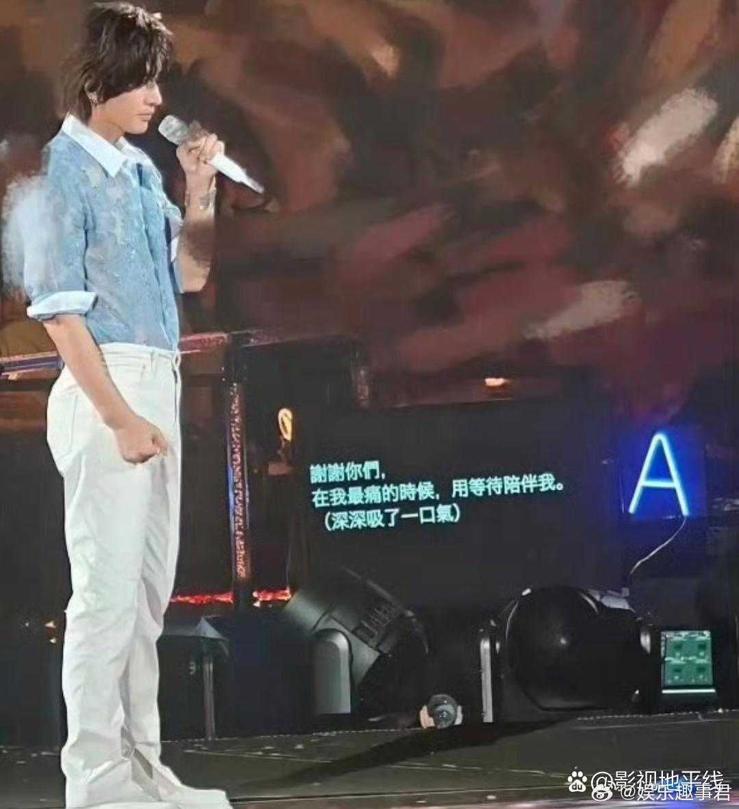 言承旭提词器近日,有网友发现言承旭演唱会提词器上,除了歌词、talking的内容,括号内还有“眼眶微微泛红”、“深深吸了一口气”等情绪和动作指令的字句。