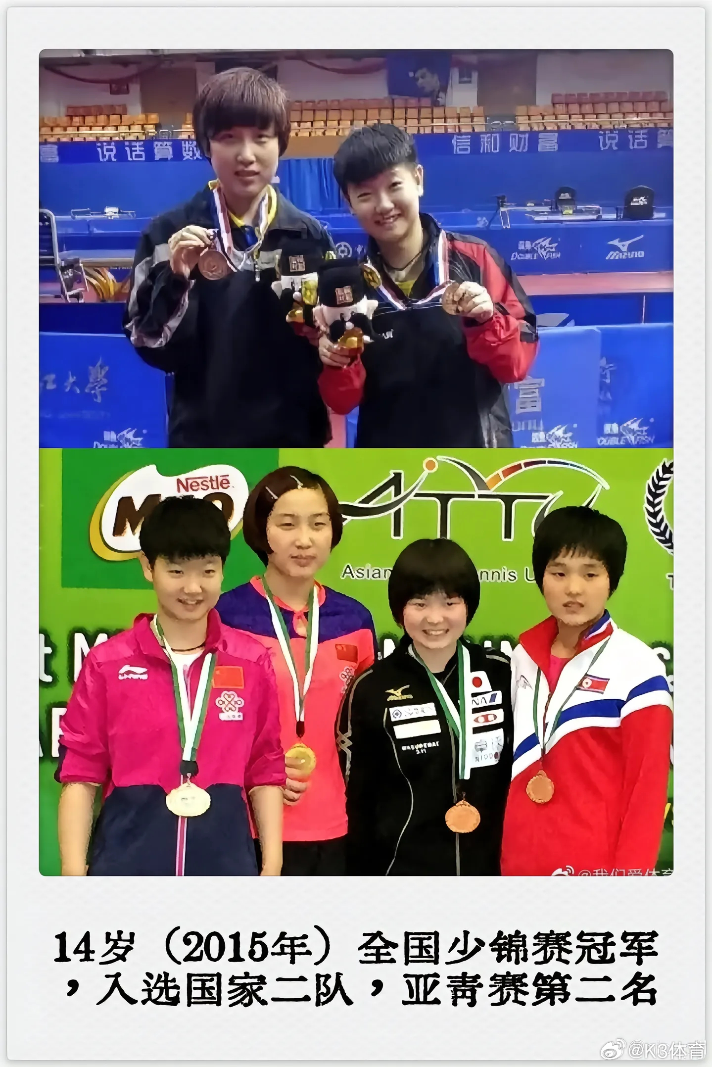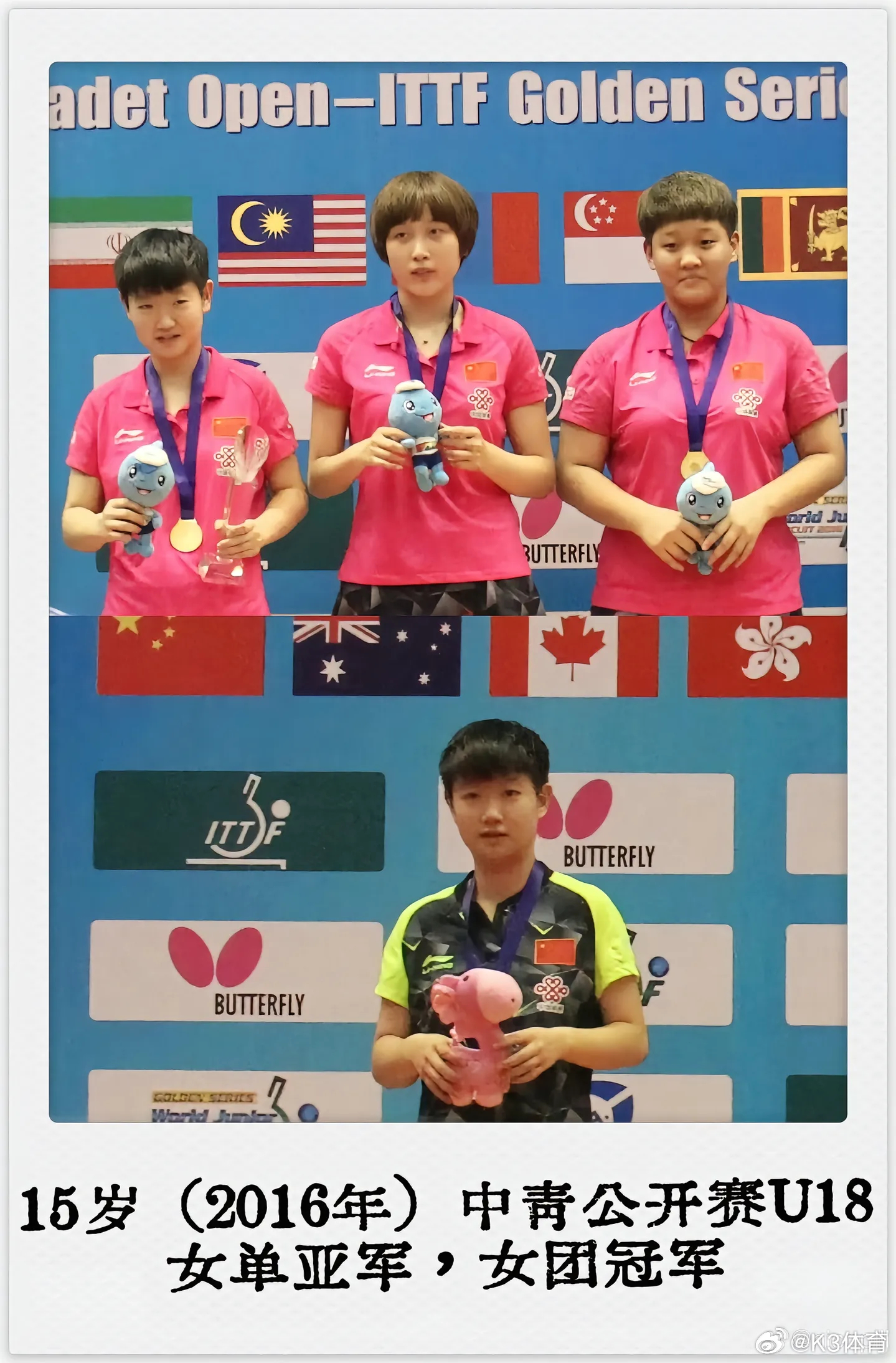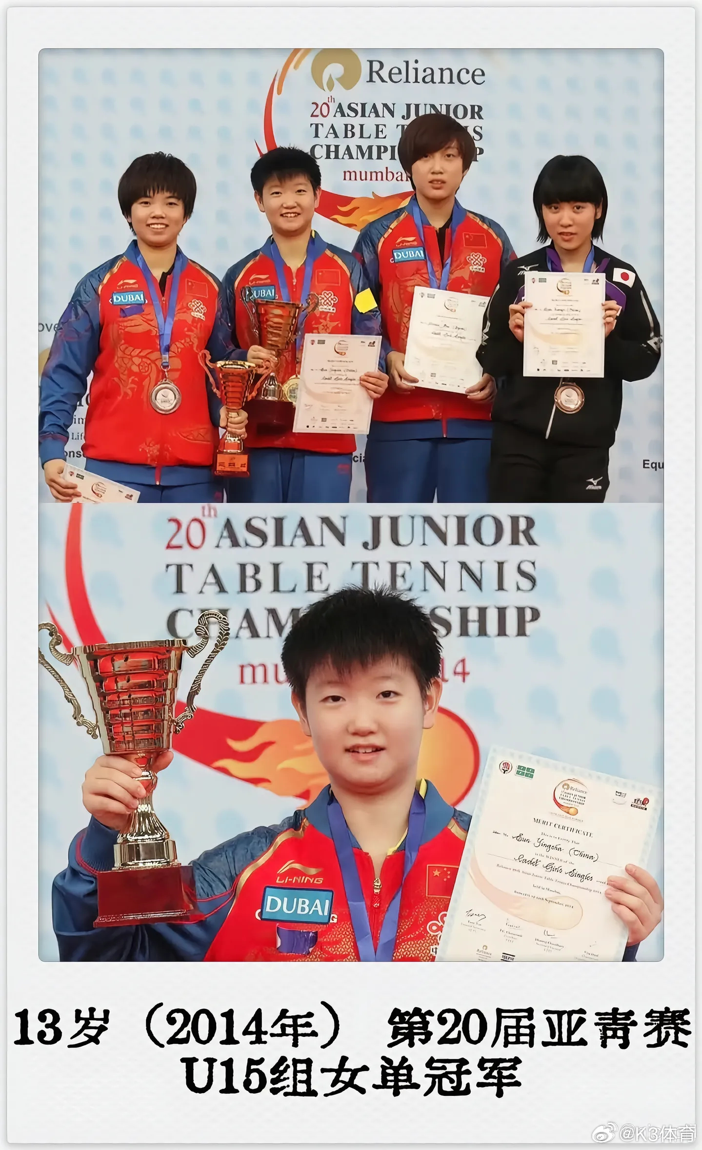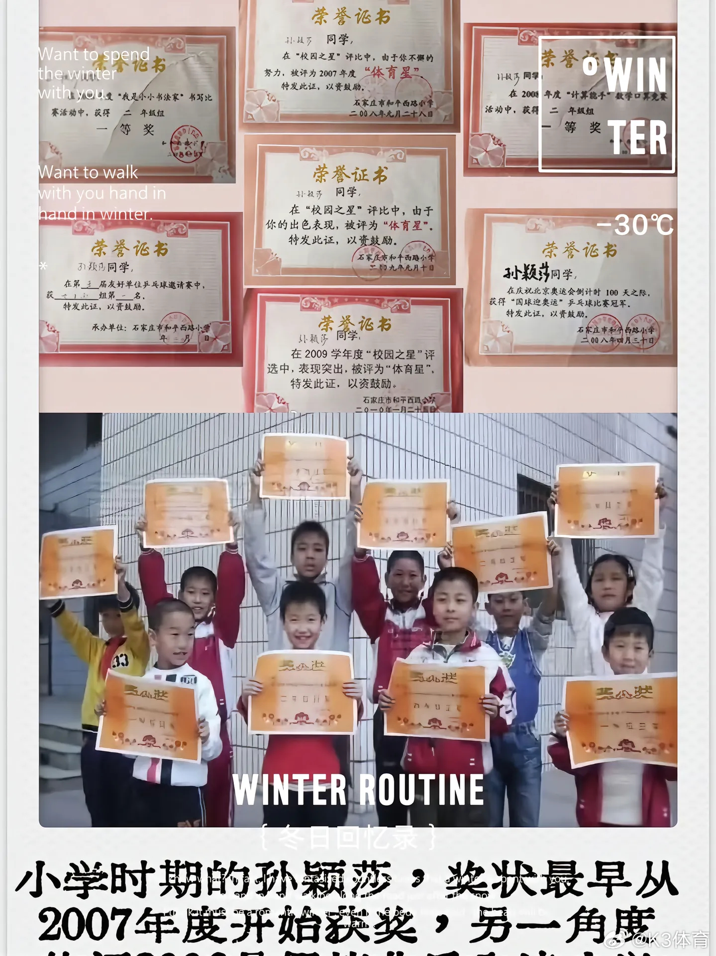 幼年孙颖莎举着小奖状孙颖莎目前已斩获18个世界冠军,更是世界杯与世乒赛的双卫冕之
