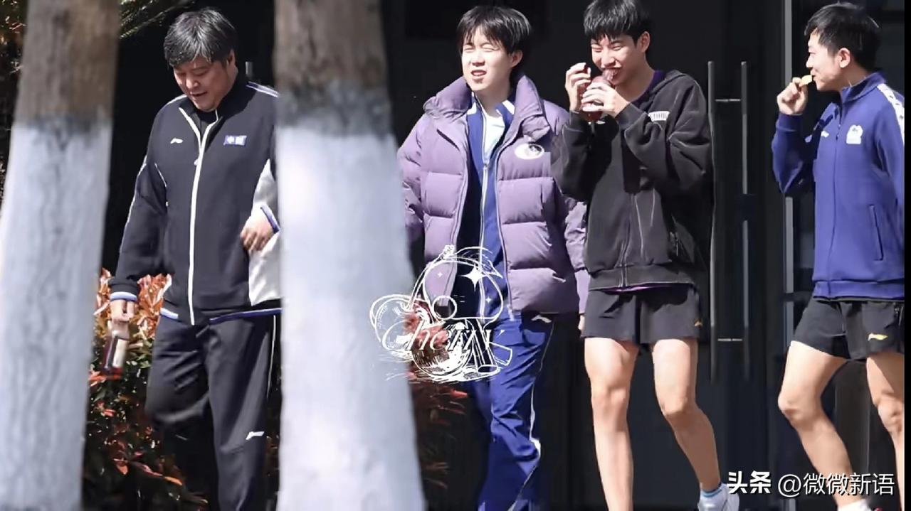 还真的是二八月,乱穿衣啊。 今天的成都天气看起来不错,王楚钦和孙逊教练、牛冠凯走在一起,牛冠凯是穿着短袖短裤,孙逊教练长袖长裤,楚钦还穿着羽绒服,他们三个穿出了三个季节,一个在过夏天,一个在过春天,一个还停留在冬天了,也可能楚钦刚刚训练完,身上有汗,穿着羽绒服比较保暖。他们在路上,也能清楚的看到对岸的那些人,昨天看到佳佳在路上停下来拿着手机在拍对面的人,拍完后笑的特别开心。 在成都封训的这几天,每天都会看到有博主分享在路上的他们,这一段时间应该是他们最放松的时候吧,大家训练结束后,一起说说笑笑,聊的也很开心。今天王楚钦和李和宸、袁励岑走在一起,三个左手将不知道在聊什么,都笑的开心,还吧孙逊教练也逗笑了。 他们这一个星期都在训练,平时也没有时间出去,周末应该会有休息,那天看到温瑞博跟赵子豪说,他只能周末去崇明了,那就是休息日的时候运动员可以自行安排自己的行程了。再过9天就是澳门世界杯了,希望国乒队员们健康完赛,取得好成绩,加油!