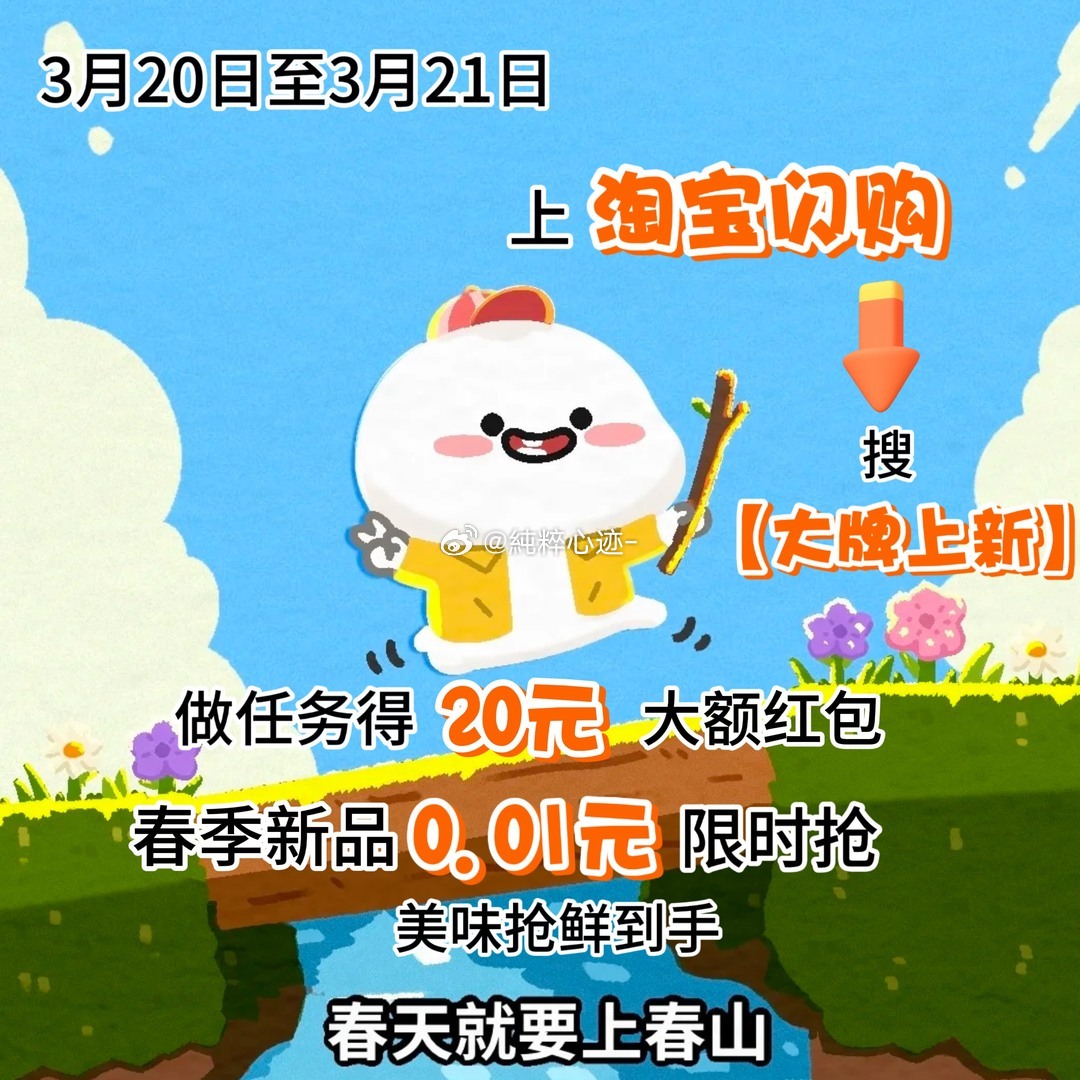 "春日抢福利,快乐不重样!3月20日至3月21日,上淘宝闪购搜「大牌上新」,完成任务必得20元大额红包春季新品0.01元限时抢,美味抢鲜到手!10点、12点:抢0.01元通兑券,还有春季限定香片16点、20点:抢0.01元通兑券,更有8.9爆品团美食,每一场福利,都值得期待!古茗双杯龙井香青团 30起配喜姐炸串【到手4件】招牌全家福套餐 38.9起,这一口下去春天值拉满。和淘宝闪购明星天团抢春季新品淘宝闪购大牌上新季淘宝闪购