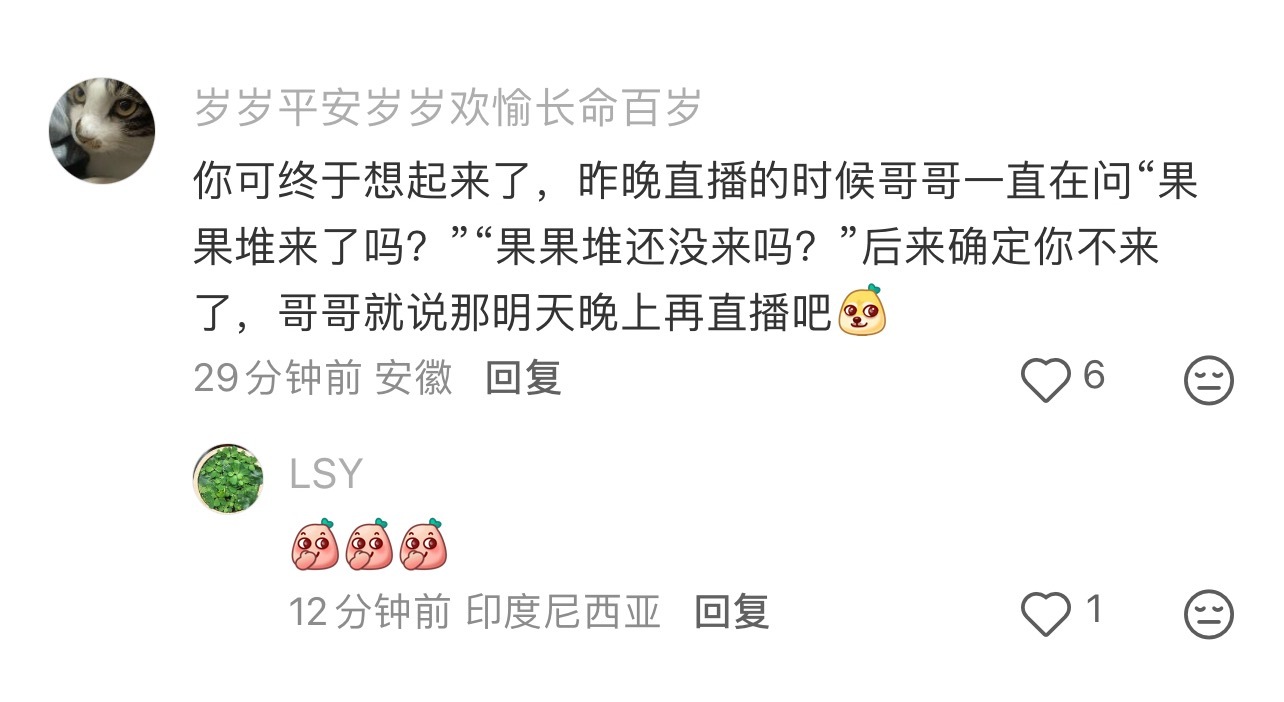 成毅帝舵直播是今天晚上七点半⌚️一个果果记错时间以为错过了直播在难过🥹评论区的果果们太有爱了!我都说了,iejj人均人美心善还有梗!谁说ie机器人,ie可太有趣了!完全粉随正主,有趣的灵魂~