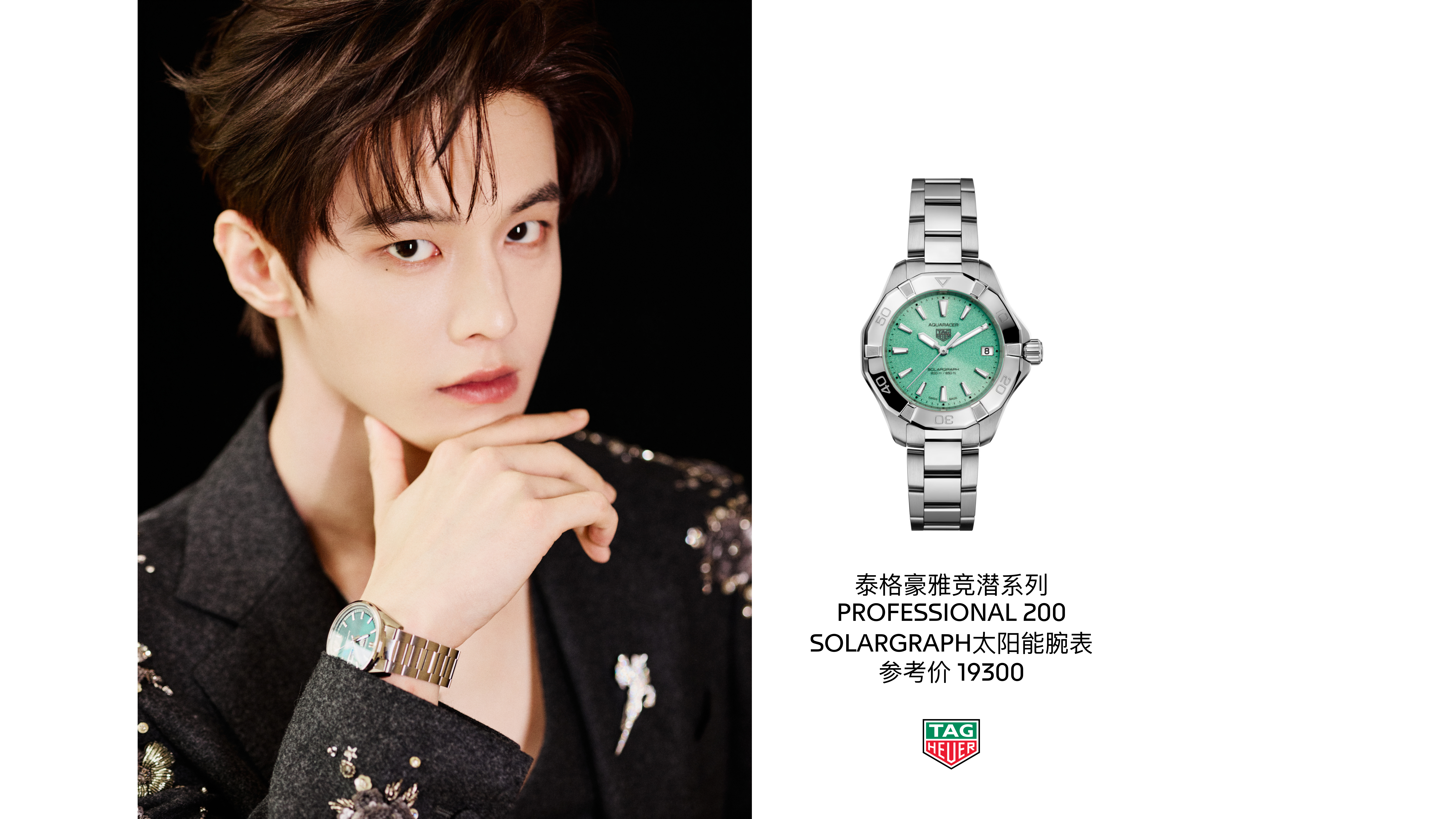 演员佩戴TAG Heuer 泰格豪雅竞潜系列 PROFESSIONAL 200 SOLARGRAPH太阳能腕表,于方寸间定格无畏探索的精神,尽显摩登少年的酷飒风范。