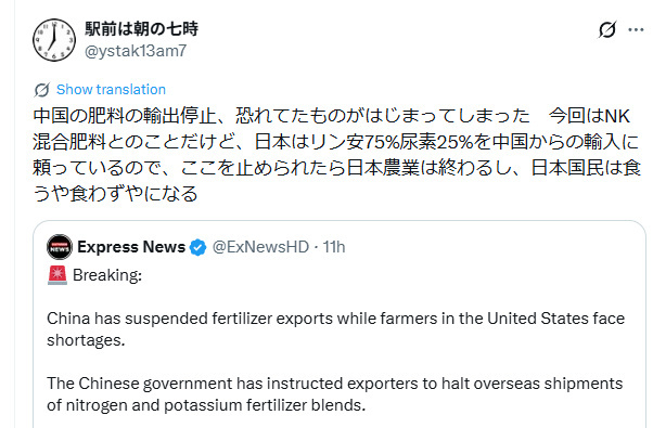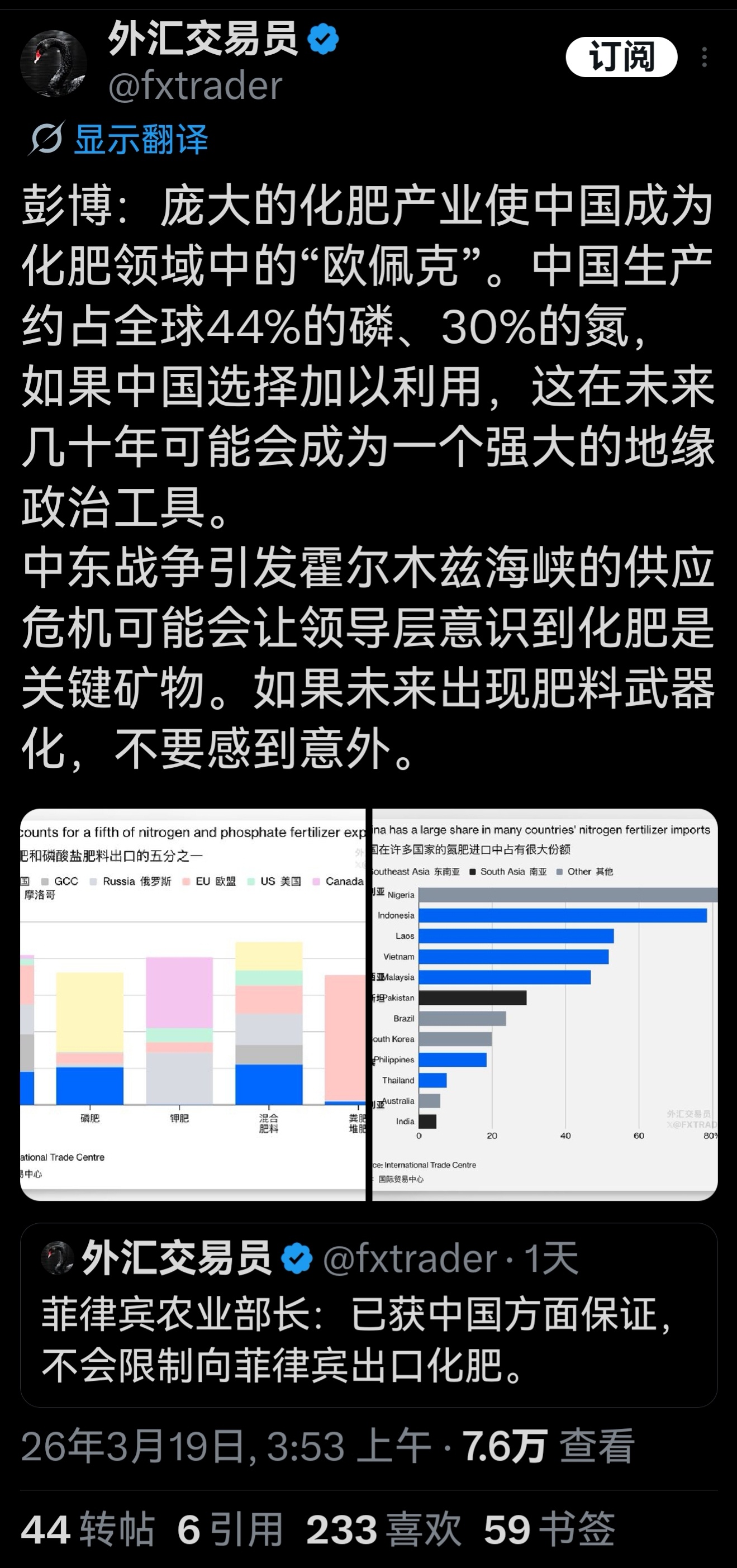 小八嘎的反应真迟钝,东大3月14日就已经完全禁止磷肥出口了,出口禁令至少要持续到