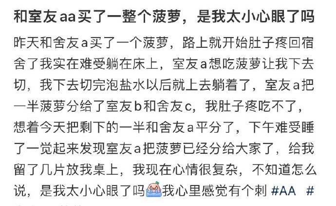 和室友aa买了一整个菠萝,是我太小心眼了吗 ?