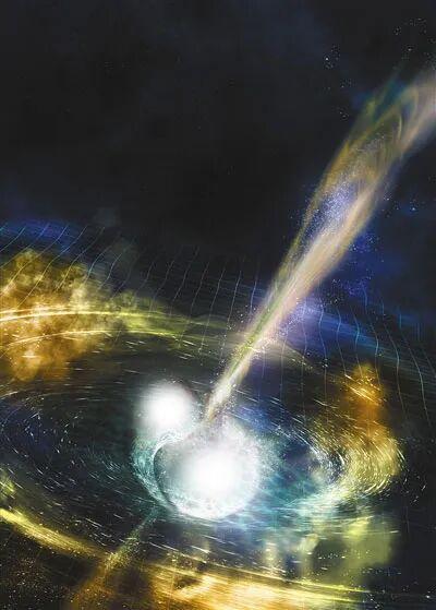 当两颗中子星在引力作用下螺旋靠近、最终猛烈相撞时,撞击瞬间的温度和压力足以把物质锻造成金、铂这些贵金属。2017年,天文学家第一次亲眼“看到”了这个过程。