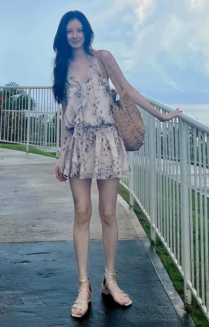 徐贤 徐贤波点吊带短裙大长腿黑色漆皮尖头细高跟