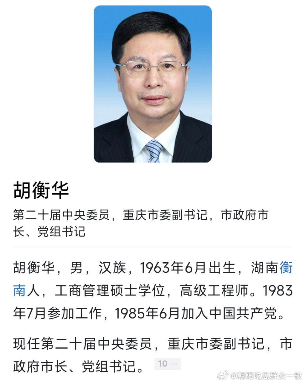重庆市长胡衡华被查重庆市长胡衡华任上落马!