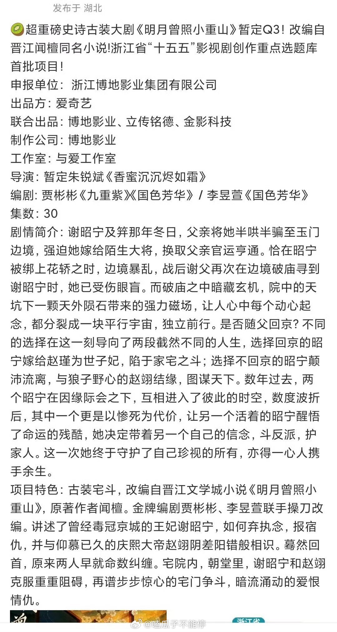 卢昱晓要演明月曾照小重山了,导演朱锐斌