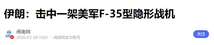 F-35被防空导弹命中,全球首架五代机带弹洞迫降!很多人以为这只是一次普通的战损事故。错了!真相是美军耗费数千亿打造的隐身神话,被一枚光学制导导弹当众拆穿,而这一刻,美国防长正在麦克风前宣布"决定性获胜"。 2026年3月19日,一条新闻刷遍全网:美军一架F-35A隐形战斗机,在中东某美军基地紧急迫降,机身带着明显的弹洞,勉强着陆。 很多人看了这条新闻,都觉得这就是一次普通的战损事故,没什么大不了,毕竟打仗就难免有装备受损。 但大家都想错了,这件事根本不是普通的事故,背后藏着一个大真相——美国耗费上千亿美元打造的F-35隐身神话,被一枚光学制导导弹当众拆穿,更讽刺的是,就在这架战机带伤迫降的同一时刻,美国国防部长还在麦克风前,高调宣布美军在中东取得了“决定性获胜”。 事情的经过很清楚,当天最先披露消息的是美国CNN电视台,他们援引两名知情人士的话,说这架F-35A当时正在伊朗上空执行作战任务,突然出现状况,被迫紧急返航,最终降落在中东的一处美军基地。 消息一出,美国中央司令部马上出来表态,发言人蒂姆·霍金斯说,飞机和飞行员都很安全,至于迫降的原因,他们说“正在调查”,还试图把这件事说成是普通的机械故障或者飞行失误,想蒙混过关。 可美军的这套说辞,没过多久就被彻底戳穿了。一段现场流出的画面在网上传开,画面的最后一帧看得清清楚楚,这架F-35A的机身上,有一个明显的弹洞,机身还有被导弹击中后的痕迹。 很明显,这架战机不是因为机械故障迫降,而是被导弹命中后,勉强飞回来的。飞机虽然没掉下来,但美国一直吹得天花乱坠的F-35隐身神话,彻底掉在了地上。 可能有人不知道,美国为了打造F-35这款隐形战斗机,花了多少钱。根据公开的数据,美国五角大楼对F-35项目的总预算高达1.5万亿美元,其中光研发资金就有551亿美元,采购资金更是达到3190亿美元。 单架F-35的造价就超过1亿美元,美国天天吹嘘,说这款战机是全球最先进的五代机,身上有隐身涂层和特殊外形,能躲过所有雷达的探测,敌人的导弹根本打不到它,靠着这个隐身优势,能在战场上神不知鬼不觉地打击目标。 可这次击中它的,偏偏是一枚光学制导导弹,这种导弹和咱们平时听说的雷达制导导弹不一样,它不用靠雷达发射信号找目标,而是靠自带的光学设备,就像人用眼睛看东西一样,盯着飞机的样子锁定目标。不管F-35的隐身涂层多厉害,只要它在天上飞,光学制导导弹就能看到它,就能锁定它、打中它。 后来根据多方消息确认,这次击中F-35的,是伊朗的防空部队,他们用的大概率是AD-08“光荣”防空系统,或者“358”防空巡飞弹,这两种武器都是光学制导的,不用依赖雷达,一辆普通的卡车就能搭载发射,非常适合在中东的地形里设伏。 伊朗之所以能成功击中F-35,一方面是他们提前观察到了F-35的飞行路线,在必经之路设下了埋伏;另一方面,美军的F-35连续多日高强度出动,飞行员和飞机都处于极度疲劳的状态,飞机的部分设备可能出现了故障,导致F-35身上的告警系统没能及时发现来袭的导弹。 按理说,F-35作为最先进的五代机,机身上有6个光电窗口,能实现360度全向观察,还能自动释放干扰弹,应对导弹袭击。 可这次,这些防御措施全失效了,飞行员压根没收到任何预警,也没做任何规避动作,直到被导弹击中,才反应过来,只能紧急返航迫降。这也说明,美军吹的“隐身无敌”,其实根本没那么神。 更让人觉得讽刺的是,就在这架F-35被导弹击中、拖着伤返航的时候,美国国防部长皮特·赫格塞斯,正在一个公开场合对着麦克风高调宣布,美军在中东取得了“决定性获胜”,还说伊朗的防空系统已经被他们彻底摧毁,美军能在中东上空自由飞行,没有任何威胁。 一边是自己最先进的隐形战机被导弹打穿,带弹洞迫降;一边是防长在台上大吹大擂,这种反差,简直太丢人了。 面对流出的画面和外界的质疑,美军后来也没法再隐瞒,只能改口,不再提“机械故障”,但也没明确承认是被伊朗的导弹命中,只是含糊其辞地说“事故原因仍在进一步调查中”。 其实大家都心里清楚,这就是一次被导弹命中的战损,美军之所以不敢承认,就是怕丢面子,怕大家知道他们花几千亿打造的隐身神话,居然这么不堪一击。 这件事看起来只是一次普通的战机迫降事故,但其实意义重大。它是全球第一架被导弹击中的五代机,彻底打破了美国吹了多年的F-35隐身神话,也让全世界看清,美军的装备不是不可战胜的,所谓的“技术优势”,也只是他们自吹自擂的噱头。