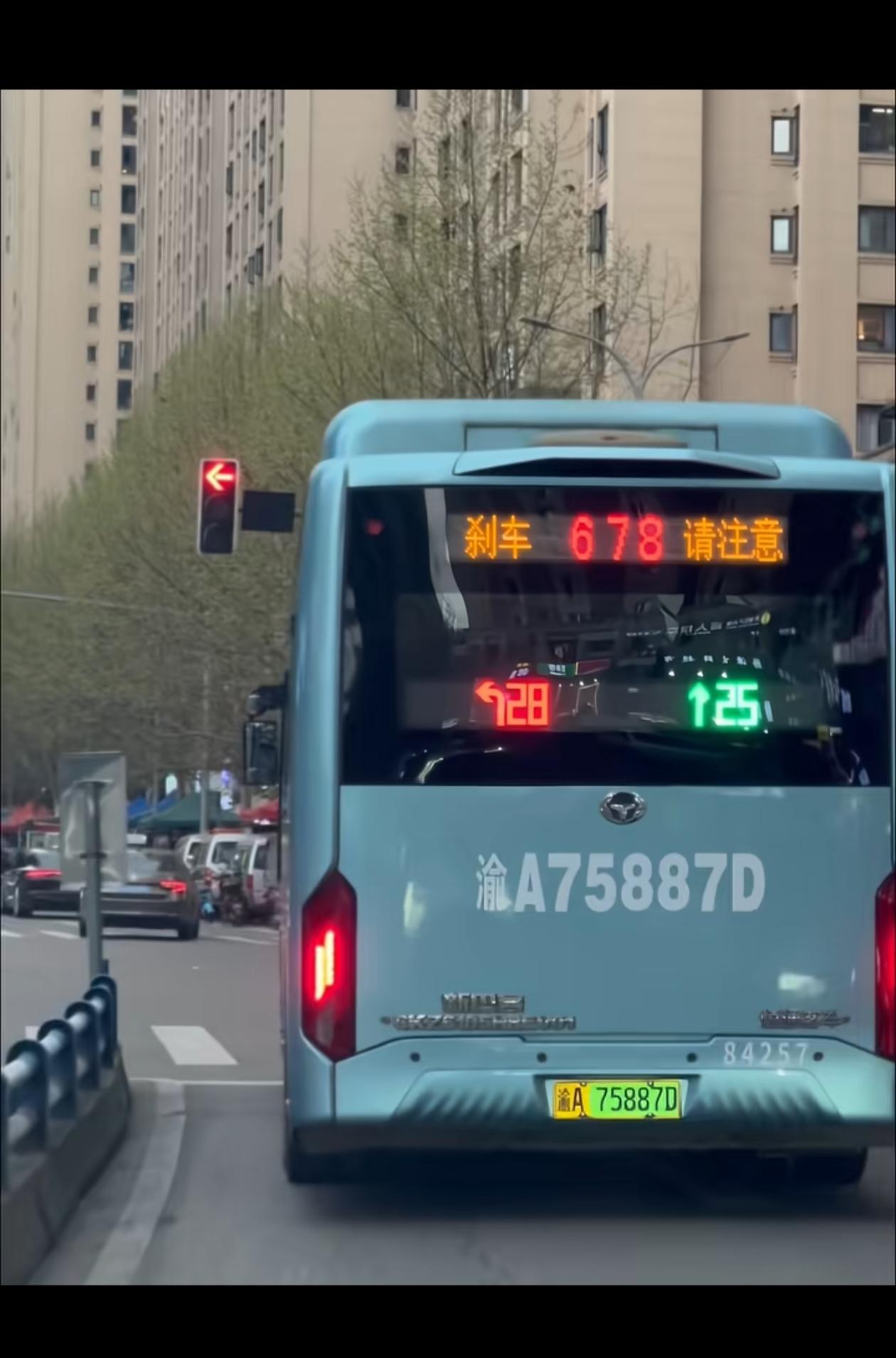 重庆公交车尾部新增LED显示屏真的很人性化,能够实时显示前方红绿灯信息,能给后面