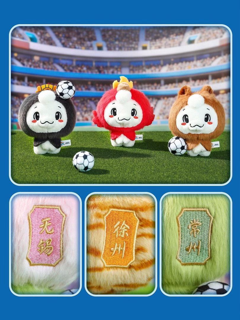 苏超吉祥物苏嘟嘟出道苏超官方吉祥物-苏嘟嘟系列毛绒,正式发布十三个市,很有巧思了