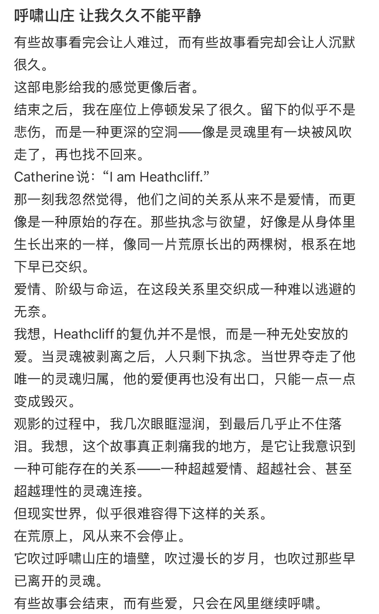 呼啸山庄戒断反应 终于有人懂我看完电影的后劲了!后劲大到戒断三天,情绪一直陷在里面出不来,爱恨太浓烈,看完心里空落落的,谁懂这种走不出来的感觉 看呼啸山庄的后遗症