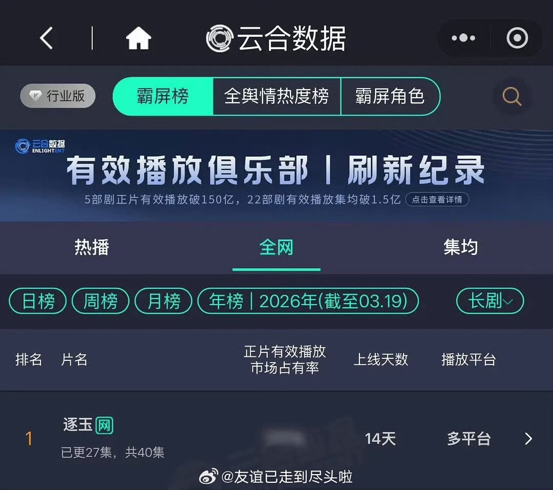 张凌赫,田曦薇《逐玉》播出14天即登顶云合年榜第一了,这剧目前热播期集均8000w打底,估计很难有剧能超越了吧