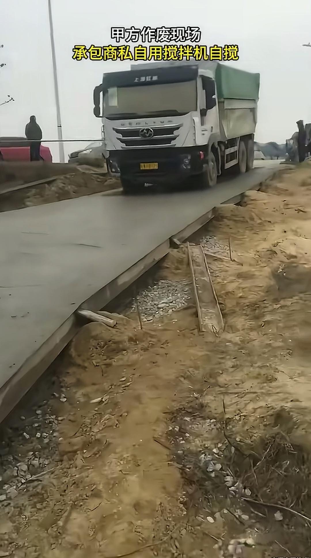 修水泥路时,承包商擅自使用搅拌机搅拌混凝土,结果甲方用渣土车将其碾压作废,这种做法让很多人费解。 同样是机械搅拌的混凝土,为何泵车灌装的和小型搅拌机在现场搅拌出的,会让甲方做出作废的决定呢? 刚铺好的水泥路就这么被作废,不仅造成材料浪费,清残重铺还会给承包商带来额外损失,这纯粹是浪费啊! 就算厚度不够,在上面再铺一层并用振动器压实岂不是更好?难道是搅拌机搅拌出来的混凝土质量不达标? 有没有这方面的行家,出来说两句呀! 工地开搅拌车
