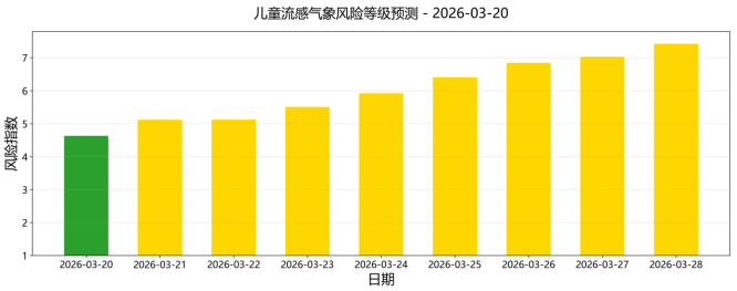 图12026年3月20日至28日天津市儿童流感气象风险指数预测趋势