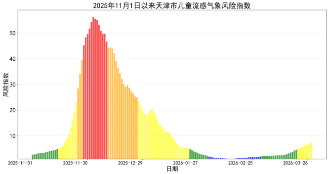 图22025年11月以来天津市儿童流感气象风险指数变化趋势