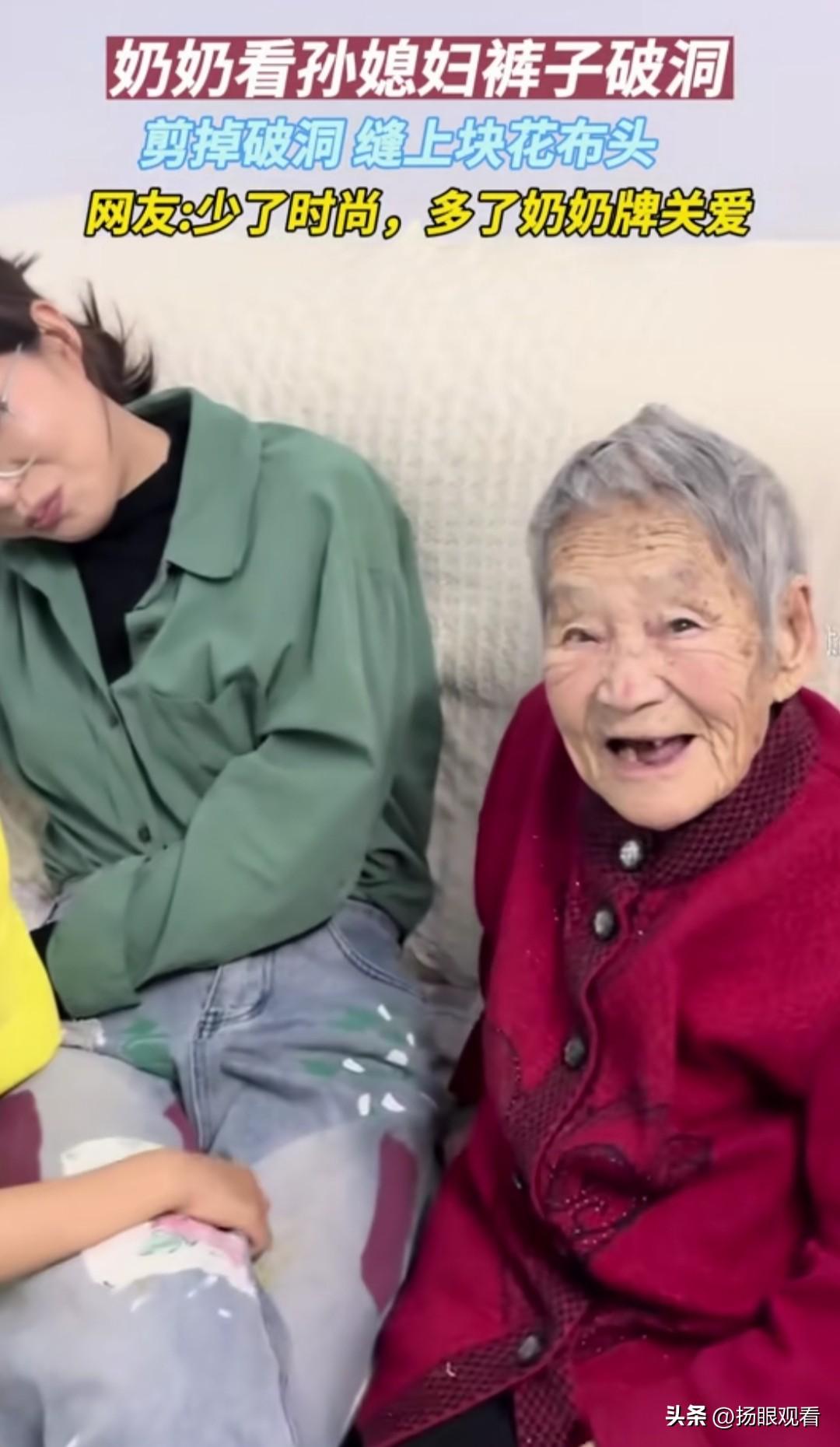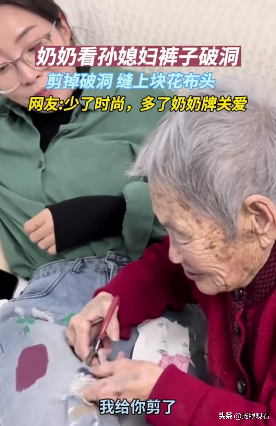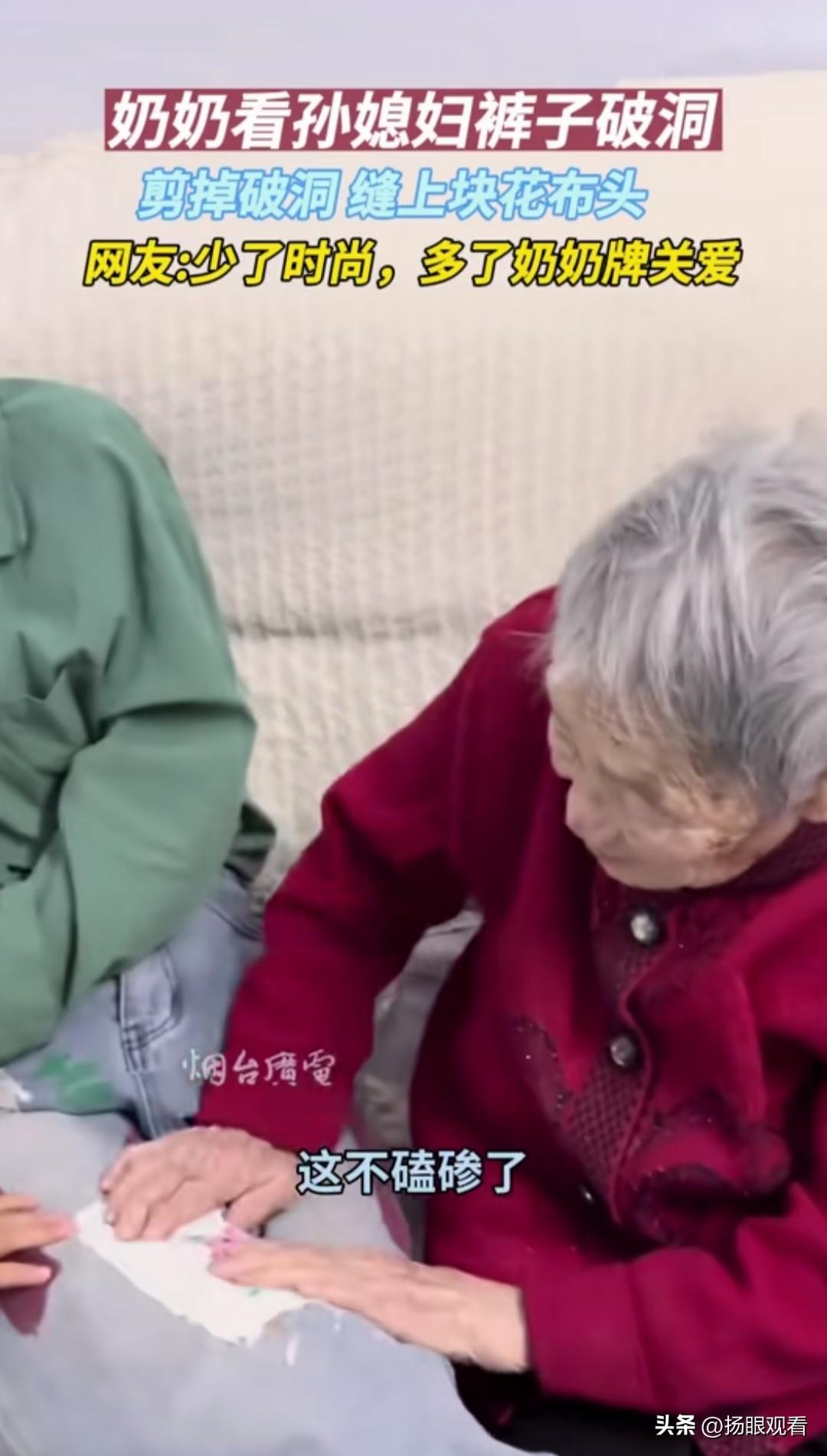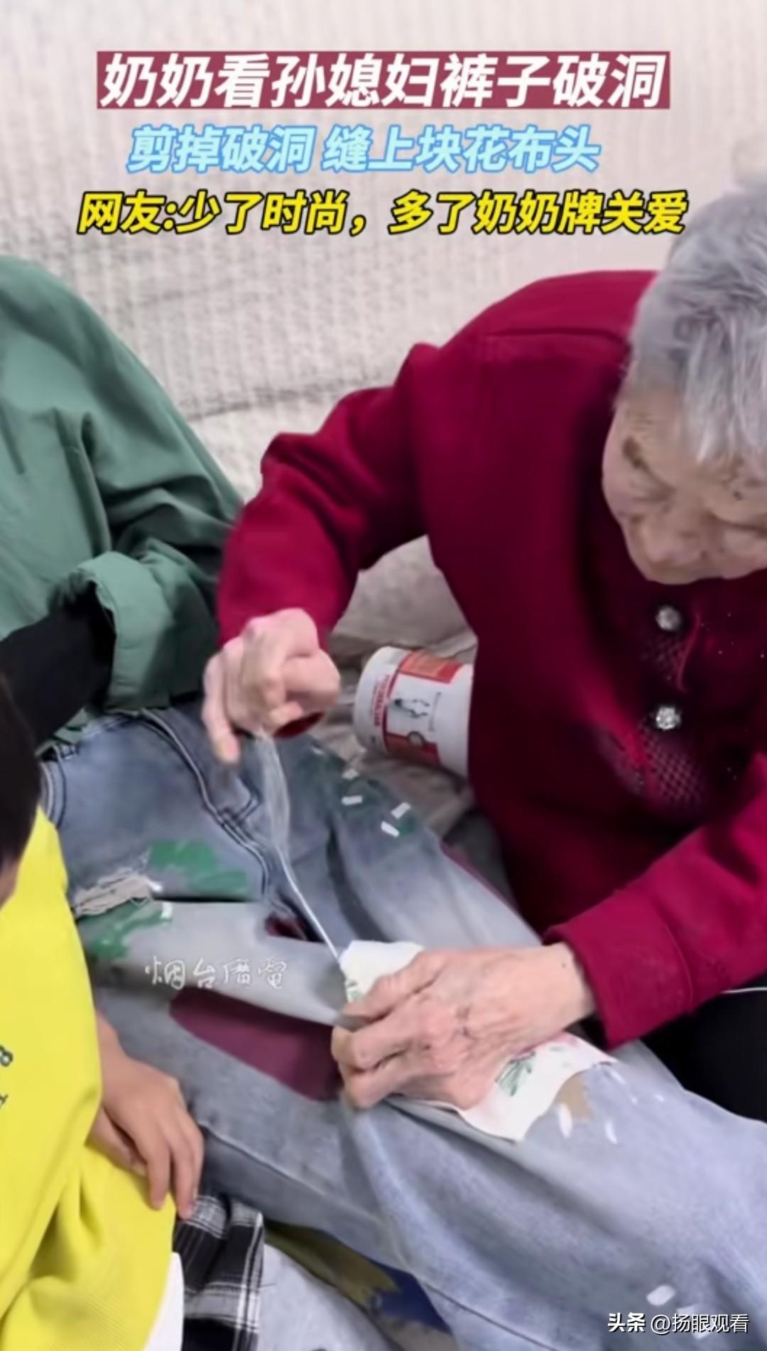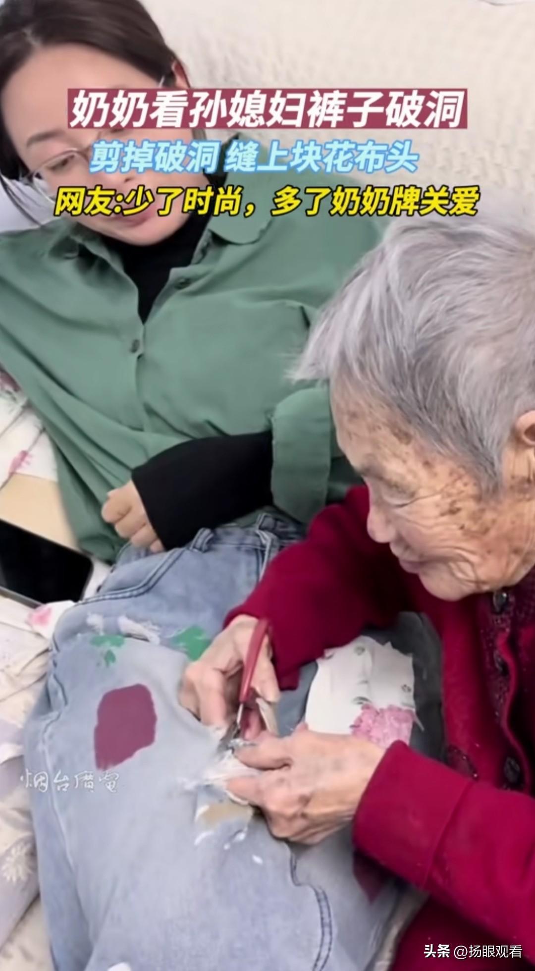 烟台奶奶太可爱了!破洞裤秒变限定款 我刷到烟台奶奶直接破防,孙媳妇的破洞牛仔裤,奶奶以为是穿烂了 偷偷把破洞剪掉,缝上珍藏的花布头✨ 针脚超整齐,花布喜庆又复古 本来哭笑不得,越看越暖心 奶奶说:补补还能穿,不冻腿🥹 我觉得这哪是补裤子啊 是把疼爱一针一线缝进去 全网最潮限定手工裤,舍不得洗了!