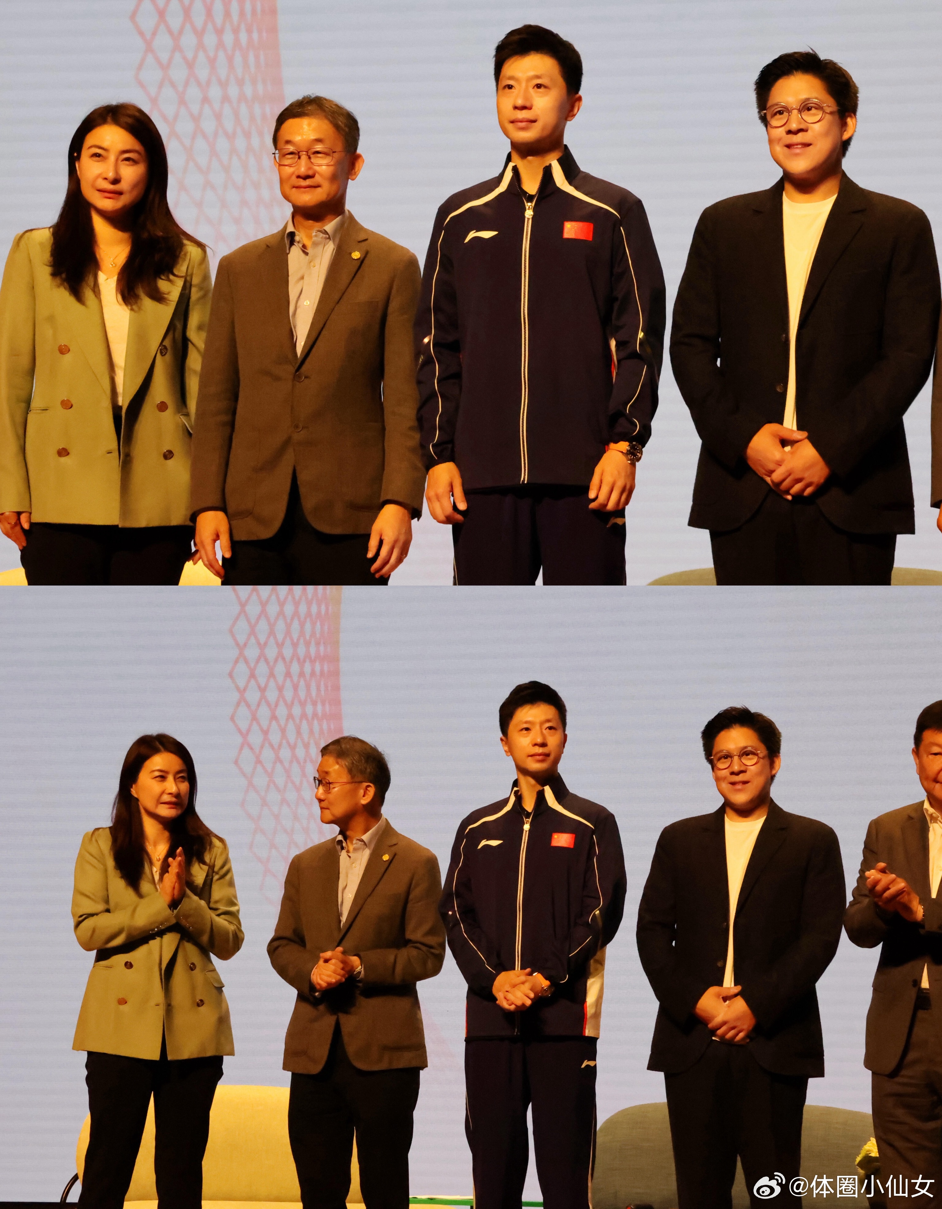 马龙和霍启刚郭晶晶夫妇在港理工合影!马龙受霍启刚邀请,出席港理工研讨会!依旧是意