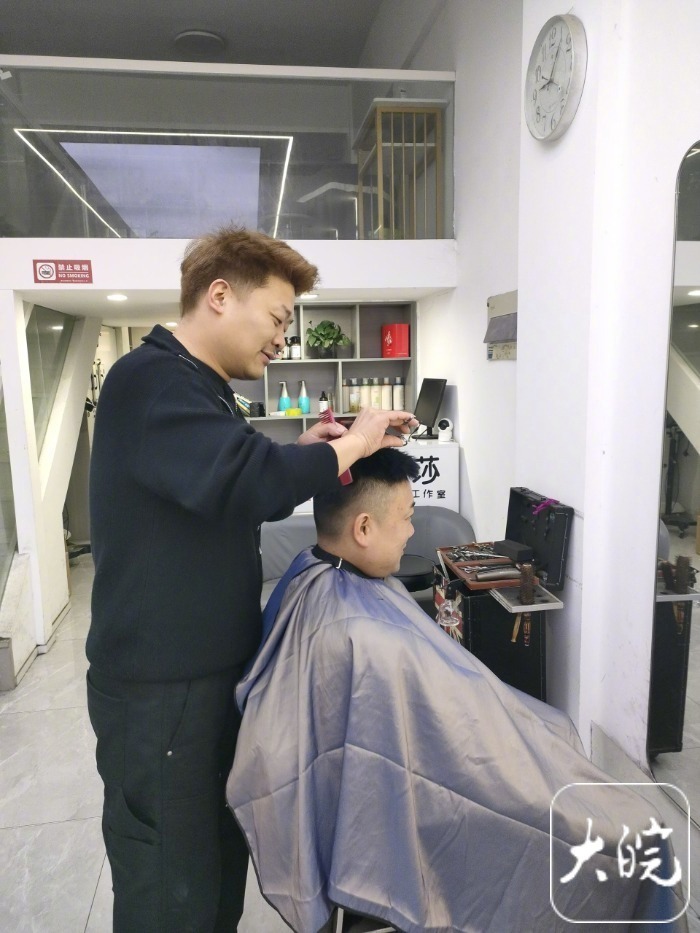 上午9点多,在合肥贵池路的一家理发店内,两名顾客正在理发。顾客张先生表示,他特意选择农历二月二日理发,这是习俗,也寓意着吉祥如意,一年顺顺利利。